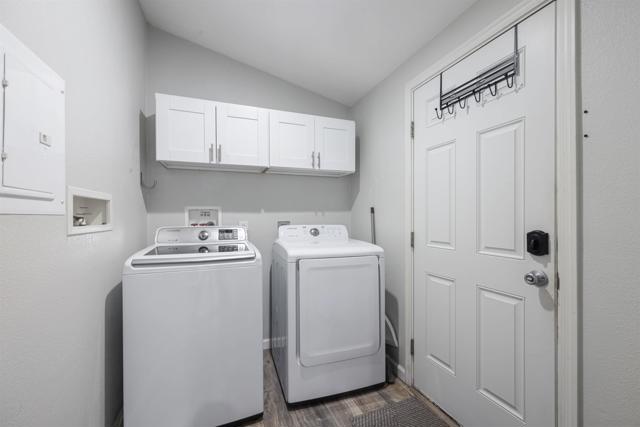 Move-in ready! Built in 2012. Impeccably maintained 3BR/2BA manufactured home offering 1,136 sq. ft. living space w/ an open, airy layout & vaulted ceilings. Features include upgraded flooring, a contemporary kitchen w/ quartz countertop, soft-closing cabinets, & stainless-steel appliances. Both bathrooms have been tastefully upgraded; laundry room w/ washer/dryer. Enjoy larger backyard & side yard spaces, a 2-car carport, & storage sheds/bins. Located in a gated, upscale residential park with resort-style amenities—swimming, recreation, fitness center, library, and more. Quiet, clean, and elegant—ideal for 55+ active adult living and wellness. Welcome to this beautifully maintained 3-bedroom, 2-bath manufactured home offering 1,136 sq. ft. of comfortable living space with an inviting open-concept layout and vaulted ceilings. Upgraded flooring throughout enhances the bright, airy feel of the home. The contemporary kitchen features quartz countertops, newer self-closing cabinets, and stainless-steel appliances, flowing seamlessly into the living and dining areas—perfect for everyday living and entertaining. Both bathrooms have been tastefully upgraded, and a separate laundry room with washer and dryer adds convenience. Enjoy outdoor living with a larger backyard and side yard, ideal for relaxing or gardening. Additional features include a 2-car carport and ample storage with sheds and bins. Located in a gated 55+ community with a swimming pool, jacuzzi, clubhouse, BBQ area, fitness room and laundry facility. This home offers comfort, style, and an active lifestyle. Truly a wonderful place to call home.