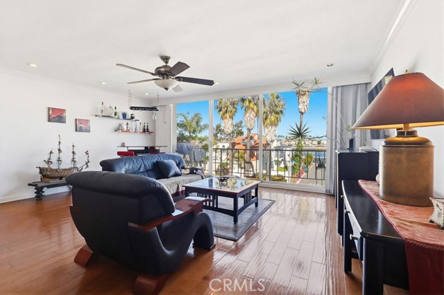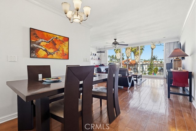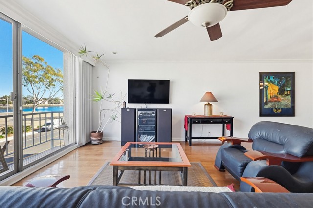 Located in the heart of Belmont Shore, this well-maintained condominium offers an exceptional coastal lifestyle with walkable access to the water, local shops, dining, parks, and all the essentials. Set within the highly sought-after Sea Isle Landing community, the home enjoys beautiful views of Alamitos Bay and the marina, along with the rare convenience of a private boat dock, with the opportunity of owning or renting a boat slip. This is perfect for embracing waterfront living. Inside, hardwood flooring and crown molding throughout create a refined and cohesive interior. The entry opens to a defined dining area highlighted by a dedicated light fixture, flowing seamlessly into a spacious living room. Large windows and sliding glass doors fill the space with natural light and open to a nice private balcony, ideal for indoor-outdoor living and enjoying the surrounding bay views. The kitchen is thoughtfully positioned along the living area and is fully equipped, offering both functionality and efficiency while maintaining the open feel of the home. A hallway off the entry features built-in storage cabinetry and leads to the well-sized bedroom and full bathroom. The bedroom includes ample closet space and a ceiling fan for comfort. The adjacent bathroom has been tastefully updated with modern cabinetry, a glass-enclosed shower with tub, and matching crown molding details. With its inviting layout, tasteful updates, and unbeatable location, this home presents a rare opportunity to enjoy the best of Belmont Shore waterfront living.