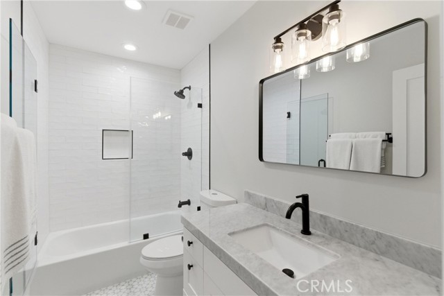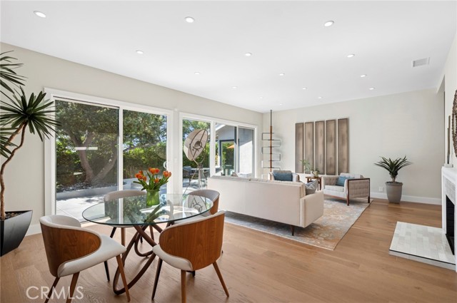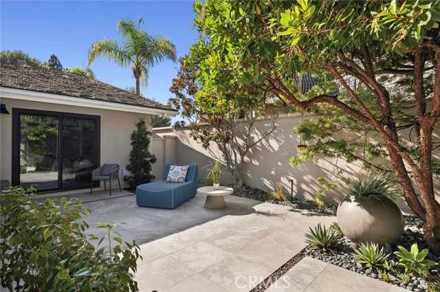 Luxurious single-story modern Dover model is located on a quiet cul-de-sac within the 24-hour guard-gated community of Big Canyon in Newport Beach. Enter the residence through a secure custom etched glass gate to a private front courtyard with porcelain tile, creating an inviting entry. This remodeled 2-bedroom, 2-bath home features engineered white oak flooring, smooth coat walls, updated electrical, recessed lighting, and large windows that provide abundant natural light throughout. The open floor plan includes a living room and dining area that both open to the backyard patio, along with a separate TV or family room filled with natural light, supporting indoor-outdoor living. The kitchen is finished with Carrara marble countertops, stainless steel appliances, a five-burner gas cooktop, a built-in Fulgor Milano coffee machine, and soft-close pull-out cabinet drawers. The oversized primary suite features floor-to-ceiling windows, sliding glass doors to the backyard patio, two closets, including a larger primary closet with ample storage, electric retractable window shades, and west-facing backyard views capturing stunning sunsets. The remodeled primary bathroom includes Carrara marble countertops, a stand-alone soaking tub, a walk-in shower, and dual vanities. The secondary bedroom offers sliding glass doors, retractable window shades, and direct access to the private front courtyard, while the fully remodeled secondary bathroom features Carrara marble countertops, a tub/shower enclosure, and a modern vanity. Additional features include professional hardscape landscaping, a backyard patio designed for outdoor living and entertaining, an attached two-car garage with storage and direct home access, an ADT security system, and updated smart home features. The home offers abundant natural light and a private, serene setting. Living in Big Canyon provides exceptional convenience with close proximity to Fashion Island shopping and dining, South Coast Plaza, Newport Beach coastal beaches, Balboa Peninsula, Crystal Cove State Park hiking trails, nearby golf courses, and community parks, along with quick access to major roads, Pacific Coast Highway, the 55 freeway, and surrounding Newport Beach destinations, making this home ideal for easy commuting and coastal living.