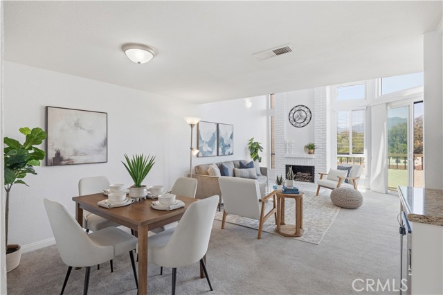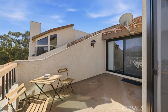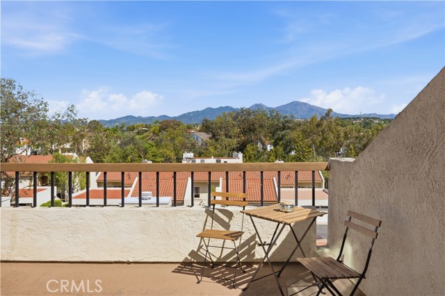 Don't miss this Mission Viejo condominium with stunning mountain views, located in the gated lakefront community of Finisterra on the Lake. This spacious two bedroom, two bath unit features a large loft, high ceilings and views galore. As you enter this open, light and bright unit, you're greeted with soaring ceilings and views straight out to Saddleback Mountain. Just off the entry is the kitchen with granite countertops, recessed lighting, breakfast nook, loads of pantry space and stainless steel appliances. The seamless flow of the living area is highlighted by a centrally focused fireplace and new dual pane floor-to-ceiling windows. A new sliding glass door leads to the private balcony where the views continue onto Lake Mission Viejo. The cozy dining area is enhanced by a built-in buffet with granite countertop, wine rack and refrigerator that's perfect for entertaining guests. The large primary suite features an ensuite bathroom with large walk-in shower, walk-in closet and new dual pane sliding glass door and window with spectacular views. The secondary bedroom is conveniently located away from the primary suite, and offers its own full bath that's completely remodeled with quartz countertops, shaker-style cabinets and more. Upstairs you'll find the large loft space with Murphy bed, and a bonus nook that is perfect for a home office or play area. This condominium offers features such as automatic and horizontal blinds throughout, lots of closet space, recessed lighting, ceiling fans, a newer AC unit, detached garage with newer roof, separate private carport, inside laundry area with all appliances included and more. Living at Finisterra on the Lake means you have access to resort-style amenities including a sparkling community pool, private beach, lakeside boardwalk, boat docks, and all the recreation opportunities Lake Mission Viejo has to offer; from paddle boarding and kayaking, fishing, boat rentals, summer concerts, 4th of July fireworks and more. Enjoy the privacy and security of this gated community, with access to top-rated schools, nearby shopping and dining and easy access to major freeways and toll roads. With its unbeatable lifestyle, this is a rare opportunity to own a slice of lakeside living in Mission Viejo.