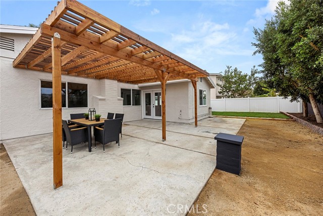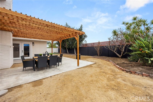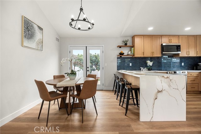 Tucked at the end of a quiet cul-de-sac in the sought-after community of Tustin Meadows, this beautiful 4-bedroom, 2-bath home welcomes you with a sense of comfort the moment you arrive. Freshly updated inside and out, nearly 1,700 square feet of thoughtfully designed living space blends modern finishes with warm, inviting touches that make a house truly feel like home. As you step inside, natural light fills the open living spaces, highlighting new flooring, recessed lighting, and fireplace with elegant stone detail — the perfect setting for gatherings with family and friends. Every surface has been thoughtfully enhanced, featuring freshly textured walls and ceilings, soft paint tones, and gorgeous designer light fixtures that create a warm and welcoming ambiance. The kitchen is designed to bring people together. Beautiful natural wood shaker cabinetry with gold accents, striking quartz countertops, a farmhouse sink, and a vibrant tile backsplash create a space that is both functional and memorable. French doors nearby allow sunlight to pour in and offer an effortless connection to the backyard, making everyday living and entertaining feel seamless. The primary bedroom offers a peaceful retreat with its own ensuite bathroom featuring dual sinks, modern finishes, and a comfortable layout, while the secondary bathroom has also been beautifully updated with stylish tile finishes and clean contemporary design to serve the additional bedrooms. Step outside and discover a spacious backyard designed for enjoying Southern California living year-round. A large grass area provides room for play or future possibilities, while the covered patio offers the perfect shaded space for outdoor dining and relaxing weekends. Mature fruit trees add charm, creating a peaceful outdoor setting you’ll appreciate every day. Thoughtful upgrades continue behind the scenes, including central air conditioning with new ductwork, EV charging capability and paid-off solar, along with numerous system improvements. Living in Tustin Meadows means enjoying neighborhood amenities. Residents enjoy private pools, expansive greenbelts, playgrounds, and a welcoming clubhouse that hosts neighborhood events throughout the year, along with beautifully maintained parks, sports courts, and scenic walking trails. Ideally positioned with convenient access to the 5, 405, and 55 freeways. Just minutes away, award-winning schools, shopping centers, dining and entertainment. This is a must see.