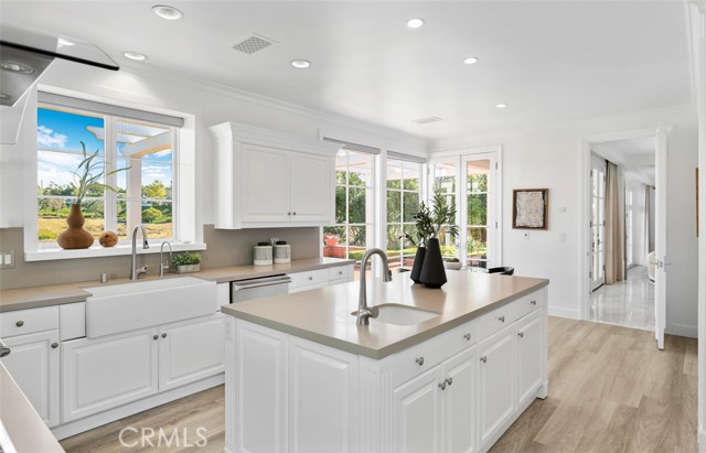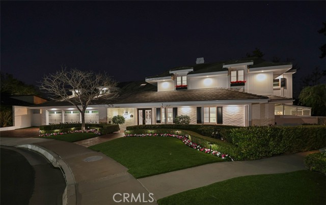 Overlooking the soon-to-be completed new driving range - fairway of Big Canyon Country Club, this exceptional residence presents a rare opportunity to own a home tucked away on a peaceful cul-de-sac with expansive golf course views. The owner’s suite is a true sanctuary, complete with a lounge area, dual spa-inspired bathrooms, separate walk-in closets, an additional private in-suite spa, and direct access to a view deck overlooking the driving range & fairway—offering privacy, comfort, and resort-style living at its finest. The highly upgraded kitchen serves as the heart of the home, featuring an oversized island, dining area, and a fireside sitting space ideal for relaxing. The spacious formal dining room opens to a dramatic sunken living room with a fireplace adding architectural character and warmth, while golf course views—soon to be further enhanced by course upgrades—create a tranquil, ever-changing backdrop. The main level includes a large family room that could also be used as another master bedroom. There is a dedicated office, and a guest suite with a private bathroom downstairs. Upstairs, two additional bedroom suites provide comfortable accommodations for family or guests. Easy to access all rooms there is an elevator & two staircases with a laundry room on each floor. Completing the property is a three-car garage with three additional driveway spaces, offering ample parking and storage. Designed for both elegant living and effortless entertaining, the home offers multiple outdoor entertaining areas, including a private putting green and generous seating and dining spaces—perfect for enjoying the serene fairway setting and evening ambiance.