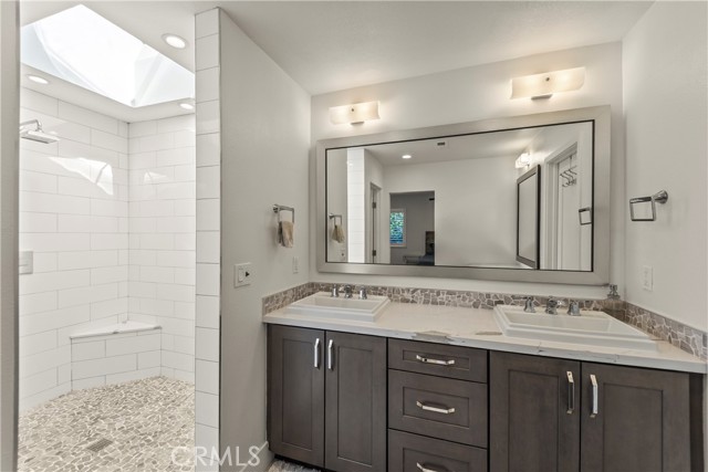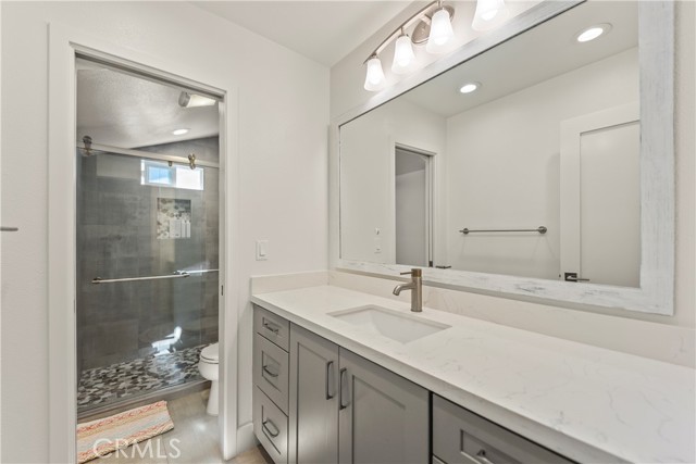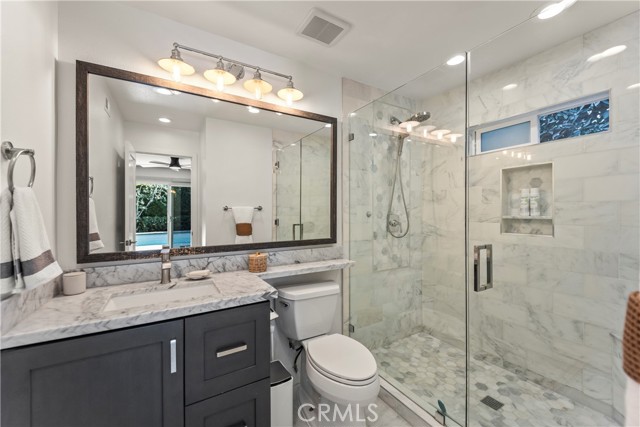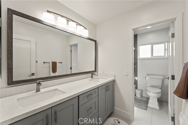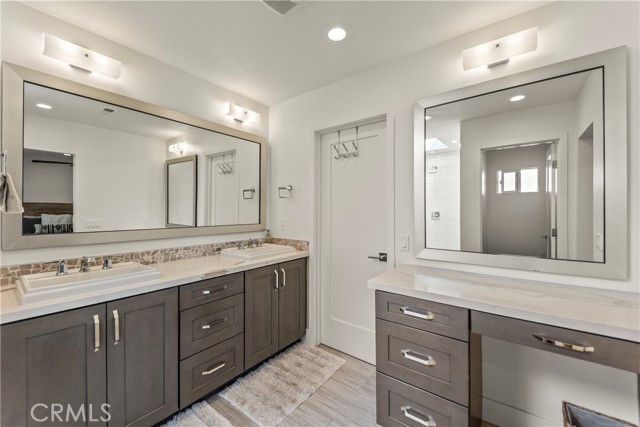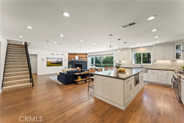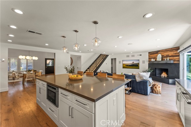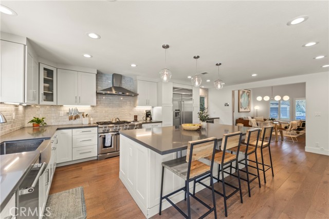Welcome home to 2705 Starbird, located in the highly sought-after Upper Birds of Mesa Verde on a quiet cul-de-sac, adjacent to Tanager Park and just moments from the Costa Mesa Country Club. This fully reimagined coastal transitional retreat offers 5 bedrooms, 4.5 bathrooms, and approximately 3,005 square feet of refined living designed for both elevated entertaining and everyday comfort. Flooded with natural light, the home seamlessly blends modern sophistication with relaxed California style, highlighted by wide-plank wire-brushed oak floors, oversized windows, and plantation shutters throughout the open-concept main level. The chef’s kitchen serves as the centerpiece, featuring crisp Shaker cabinetry, quartz countertops, polished Carrera subway tile, an expansive island ideal for gathering, a 48-inch five-burner range with griddle and double ovens, and a built-in 42-inch counter-depth refrigerator. Retractable accordion doors create seamless indoor-outdoor flow to the private resort-style backyard with a sparkling pool, lounge areas, and enhanced privacy fencing. The versatile layout includes three ensuite bedrooms—one downstairs, one upstairs, and a spacious primary retreat overlooking the park with a spa-inspired bath showcasing dual vanities, a frameless rain shower, and designer finishes. Thoughtful upgrades include a centralized smart-home control system for indoor/outdoor audio, pool features, and security, newer HVAC with A/C and Nest thermostat, newer electric panel, WiFi optimization throughout, custom closet systems, electric Hunter Douglas shades, and abundant built-in storage. The home is equipped with solar and designed for energy efficiency, complementing the EV charger in the 3-car garage along with a Flow Wall organization system and dedicated workspace. Offering an exceptional blend of design, technology, efficiency, privacy, and location in one of Costa Mesa’s most desirable neighborhoods, this incredible Mesa Verde residence truly has it all!