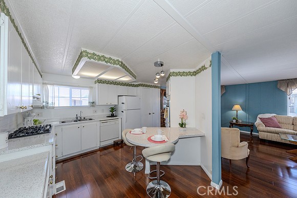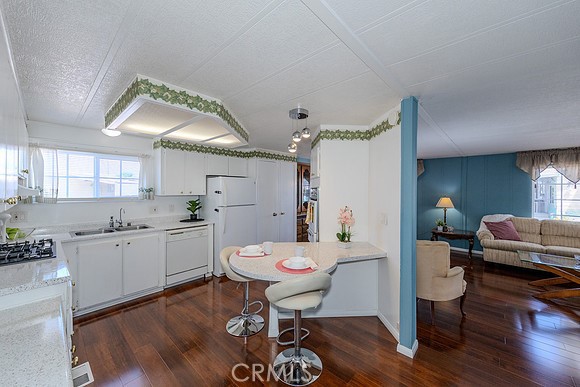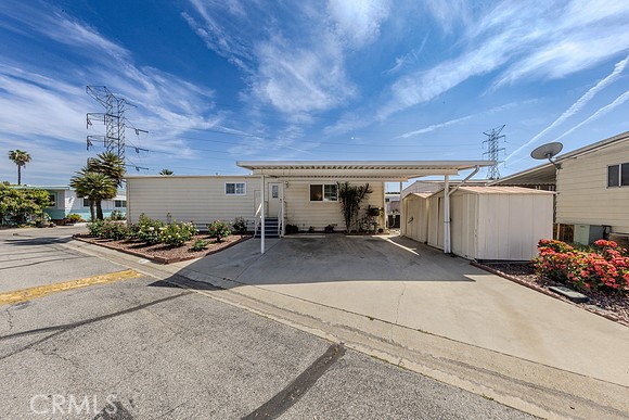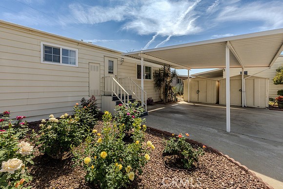 Welcome to the lovely 55+ Villa Nova Community. This beautiful single-story home offers 1,344 square feet of living space, featuring three bedrooms and two bathrooms. The living room, kitchen, and hallway have been upgraded with high-quality laminate flooring. This home features dual-pane windows, upgraded gas stove, new dishwasher, New garbage disposal and air conditioning/heating system for year-round comfort. The kitchen provides ample cabinet and counter space, including seating for casual dining, while the living room includes an adjacent formal dining area. The kitchen counter top have a new fresh coating, bathroom also have a fresh coating in the showers and on the counter tops. At the entrance, you will find an enclosed patio perfect for relaxing in any season. The utility room, which houses the washer and dryer along with extra storage, has its own separate entrance and provides convenient access to the carport. The exterior offers side-by-side parking and two storage sheds. Situated on a corner with a lot for added privacy, the property features low-maintenance rock landscaping and beautiful roses that surround the front.