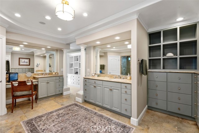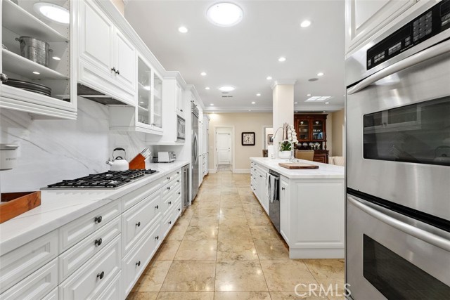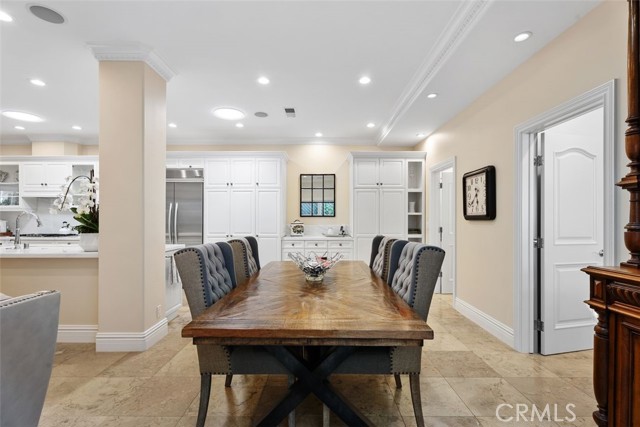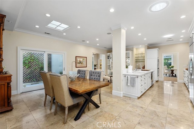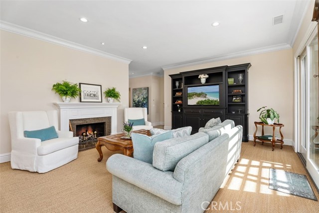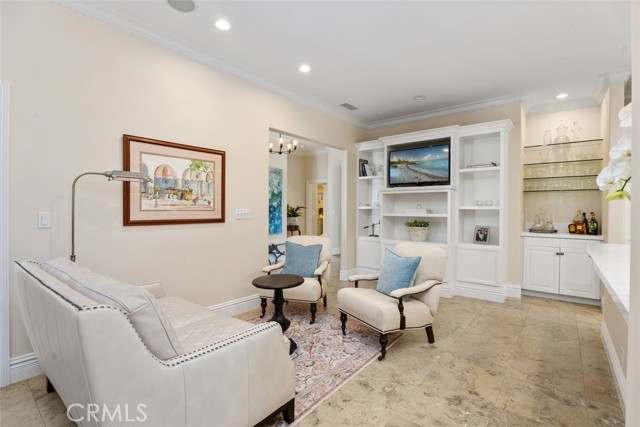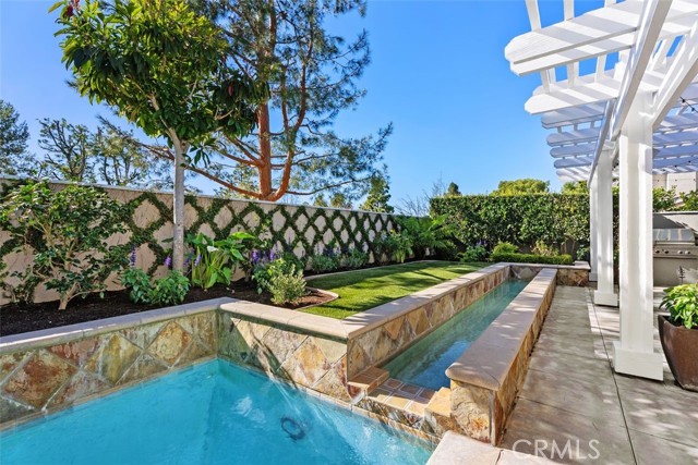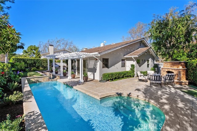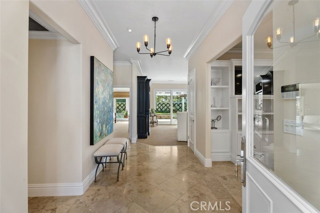 Situated in the heart of the prestigious guard-gated community of Big Canyon, this highly sought-after single-level residence offers 2 bedrooms plus a dedicated office, ideally positioned at the end of a cul-de-sac on an oversized corner lot. Expanded and thoughtfully renovated, this home combines comfort, elegance, and functionality in one of Newport Beach’s most desirable enclaves. Privacy and tranquility define the arrival experience, beginning with a gated entry that opens to a beautiful garden and sitting area, creating a serene oasis and warm welcome. Inside, limestone flooring flows throughout the entry, kitchen, family room, hallways, and baths, establishing a cohesive and refined aesthetic. The kitchen is designed for both everyday living and entertaining, featuring an oversized center island, new marble countertops and backsplash, and modern conveniences. It opens seamlessly to a casual dining area and inviting family room enhanced by beautiful built-ins. The formal living and dining rooms offer a fireplace, sisal rug, and custom built-in cabinetry, while floor-to-ceiling glass sliders create a seamless indoor-outdoor connection to the manicured backyard. Outdoor spaces are equally impressive, showcasing a covered loggia for alfresco dining, built-in BBQ, pool, and outdoor fireplace — ideal for entertaining or relaxed everyday enjoyment. The primary suite is filled with natural light and features built-in display cabinetry and media storage. The spacious primary bath includes dual sinks, a vanity, private water closet, abundant built-ins, and an oversized walk-in closet. The secondary bedroom is charming and overlooks the garden, complemented by a full bath appointed with limestone floors and marble countertops. A well-equipped office with built-in desks and cabinetry provides an ideal workspace and can easily function as a third bedroom. Additional highlights include an oversized laundry room with extensive storage, sink, and second refrigerator. The garage is outfitted with built-in cabinetry, and the property benefits from an abundance of guest parking nearby. Rarely does a single-level home of this quality, privacy, and location become available in Big Canyon. This is an exceptional opportunity to enjoy an elegant and comfortable lifestyle in one of Newport Beach’s most coveted communities.