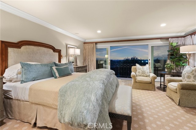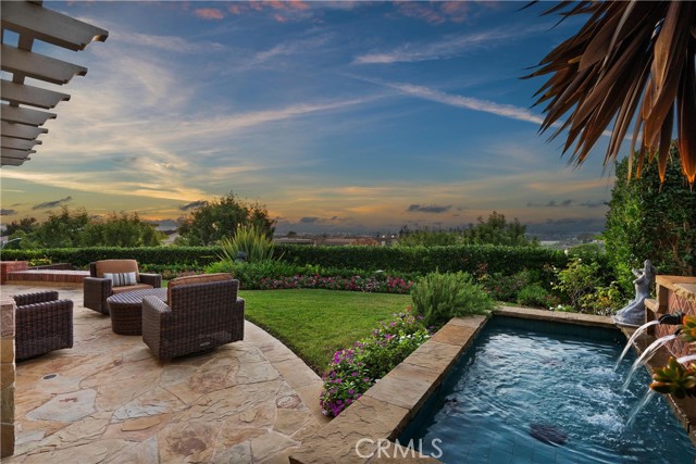 Nestled within the prestigious guard-gated enclave of Big Canyon, this exceptional residence is ideally positioned on a highly coveted, elevated oversized lot. It commands sweeping vistas, breathtaking sunsets, mountain, city lights and partial Upper Newport Bay. The thoughtfully expanded traditional floorplan features a luxurious primary suite oriented to capture the stunning views, complete with spa-inspired ensuite bath, an elegant walk-in closet, and versatile view room currently utilized as a private fitness space. One of the additional guest suites offers a spacious sitting area and ensuite bath, while the third bedroom features an adjacent hallway bathroom. Upon entry through the grand foyer, the main level impresses with rich Brazilian walnut flooring, soaring two-story ceilings, and an abundance of natural light that complements the refined, soft toned color palette. Entertain with ease, whether hosting a formal dinner indoors or enjoying alfresco dining amidst a tranquil setting enhanced by a charming fountain. This distinguished property offers a rare opportunity to enjoy resort-style living in one of Newport Beach’s most sought-after communities.