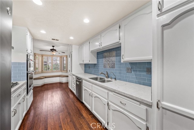 Welcome to Bixby Village! This beautifully maintained two-story Cape Cod-style townhome is ideally situated in a serene, park-like setting within one of the Long Beach's most desirable communities. Tucked in a quiet interior location with guest parking conveniently located right out front, this home offers the perfect blend of comfort, functionality, and style. Step inside to a welcoming foyer that opens to a dramatic living room with soaring two-story vaulted ceilings and an airy, open floor plan that flows seamlessly into the dining area. The dining room opens to a private patio—perfect for relaxing or entertaining. The remodeled kitchen features stainless steel appliances, a cozy breakfast nook, and recessed light, while plantation shutters throughout add timeless charm. Fresh interior paint and new carpet upstairs make the home truly move-in ready. The flexible floor plan includes a convenient downstairs bedroom and adjacent ¾ bath—ideal for guests, a home office, or multi-generational living. Upstairs, you’ll find two spacious ensuite bedrooms, both with vaulted ceilings, creating bright and comfortable private retreats. Additional highlights include a two-car attached garage with direct access, AC, and ceiling fans. Bixby Village is known for its lush greenbelts, peaceful surroundings, and exceptional amenities, including two community pools and a clubhouse. Enjoy easy access to nearby shopping, dining, top-rated schools, and major freeways, all while living in a tranquil, well-maintained neighborhood. This is a rare opportunity to enjoy space, privacy, and convenience in the heart of Bixby Village.