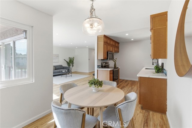 Imagine a life of sunshine, gentle breezes, swaying palm trees, waves cresting, and breaking on the shore. Awake to the knowledge that you are living your best life just two blocks from the Pacific Ocean. Welcome to the historic Belmont Heights enclave, a very walkable neighborhood with a strong community feel, close to Bluff Park and Junipero Beach. Nearby Belmont Shore, with its shops, restaurants and cafes offers a lifestyle of ease and comfort. Now, open the door to 3609 East 2nd Street #207. Cross the threshold. Step inside. That smile is your assurance of the good times to come. The foyer features an expanse of mirrored closet doors. Keep stepping. The view that beckons is the reward of living on the second floor overlooking the city life below. Floor to ceiling walls of glass doors slide open with an invitation to sip morning java on the balcony or appreciate the glittering lights in the nighttime sky. Natural light fills every space and illuminates the gleaming, wood laminate floors to glide your partner to experience the joys of art, music and literature in the spacious living area. Raise a glass and celebrate your good fortune with every tasty meal in the dining nook adjoining the kitchen. Expansive white, marble countertops with custom design, blue backsplash, abundant cabinets, all new (2023)Whirlpool appliances, including a self-cleaning electric range, built-in stainless steel microwave, and a stainless steel, top control, dishwasher are highlights of the kitchen. Every Queen deserves a royal lair. The private quarters offer nocturnal serenity in the primary bedroom with recessed lights, a spacious, mirrored closet with organizers, and an ensuite bathroom vanity with multiple drawers and a walk-in tiled shower. Tranquility awaits in the secondary bedroom. Adjacent is the hall bath with a white, tiled bathtub/shower combination, and a vanity with multiple storage options. Live like a boss. Embrace Long Beach with every Belmont Heights lifestyle enhancement. Life is what you make it and yours just got exceedingly better. Welcome home.