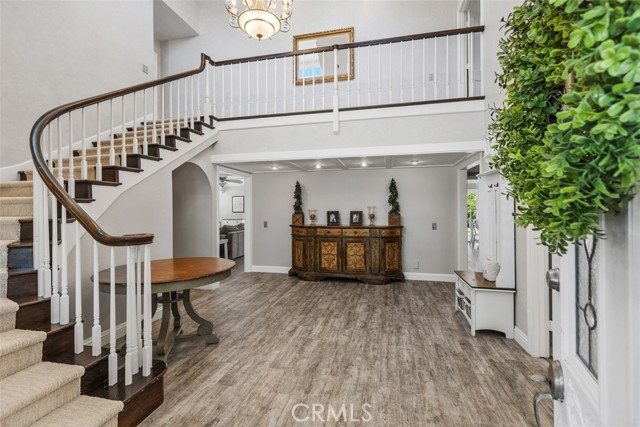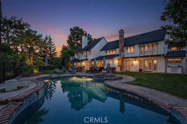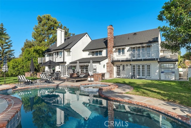 Nestled on a serene cul-de-sac, this stunning Nellie Gail Ranch custom home redefines multigenerational living with a main-level junior primary suite and an upstairs primary suite, plus a step-free lower level. Spanning almost 5,000 sq ft, this traditional residence offers 5 bedrooms, 3.5 baths, a bonus room, a craft room, an enormous laundry room and a separate office. Additional highlights include an oversized three-car garage and an owned solar system that helps reduce energy costs. A grand foyer welcomes you with beautiful flooring that flows seamlessly throughout, while brick wall accents add character and warmth. Enjoy two inviting living areas with fireplaces, a spacious dining room, and a kitchen that opens into the large family room. Upstairs, retreat to the primary suite featuring a private den, two large walk in closets and a primary bathroom with marble floors, a soaking tub, and dual vanities. The serene backyard is designed for relaxation and entertaining featuring a pool and spa, built-in BBQ, breathtaking views and a corner lot allowing for additional privacy. Nellie Gail Ranch delivers outstanding value with low HOA dues covering security, trail maintenance, and base membership to the swim, tennis, and pickleball club. Enjoy a clubhouse with restaurant, pools, 25 miles of scenic trails, parks, and community events—all in a top-tier equestrian neighborhood with easy access to freeways, shopping, and beaches. This remarkable home captures the essence of the Nellie Gail Ranch lifestyle—truly a must-see to appreciate its full charm and functionality.