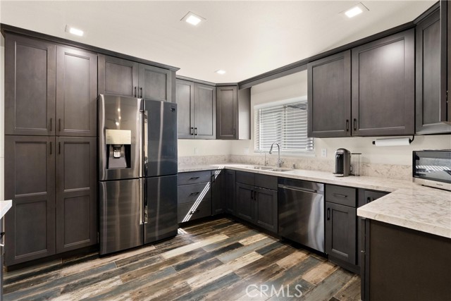 Located in a uniquely private setting with only one neighboring home, 13651 Olympic Avenue offers a rare sense of space and separation that is hard to find. This single story residence features four bedrooms, two bathrooms, and approximately 1,493 square feet of living space with an open layout that creates an easy flow between the living, dining, and kitchen areas. The home has been remodeled throughout, highlighted by a newer kitchen with custom cabinetry, quartz countertops, and stainless steel appliances. Wood look tile flooring runs throughout the main living areas, including the kitchen, while laminate wood flooring is featured in the bedrooms. Recessed lighting and newer interior and exterior paint add to the home’s clean and updated feel. Both bathrooms have been tastefully remodeled with custom vanities and designer tile work, including a walk in shower in the primary bathroom and a shower and tub combination in the guest bath. The wraparound backyard provides multiple outdoor areas to relax or entertain, featuring a spacious concrete patio and an abundance of mature fruit trees (avocado, pomegranate, orange, lemon, and apple). Additional features include solar panels and a functional floor plan that maximizes the home’s single story layout. Conveniently located near popular Orange County destinations including The LAB, The CAMP, and South Coast Plaza with a wide variety of dining, shopping, and entertainment nearby. Homes with this level of privacy, thoughtful updates, and a flexible single story layout are rare to find. Come experience 13651 Olympic Avenue for yourself. (PROPERTY TO BE SOLD CONCURRENTLY WITH VACANT LAND APN#141-521-50)