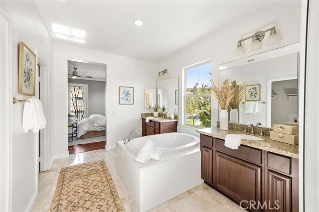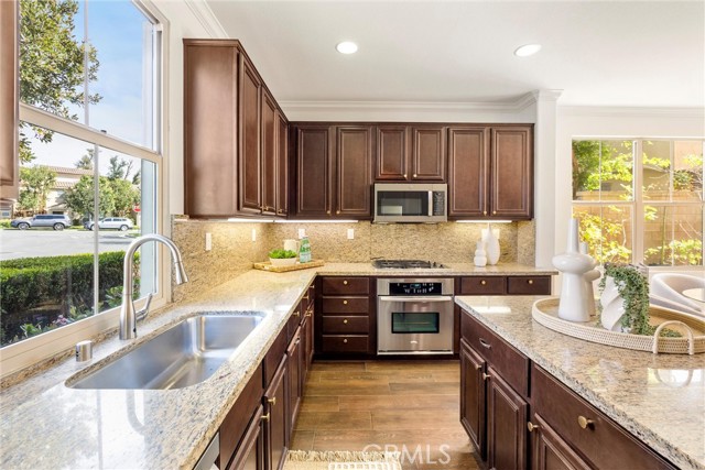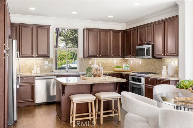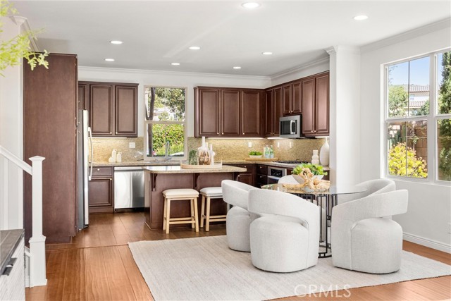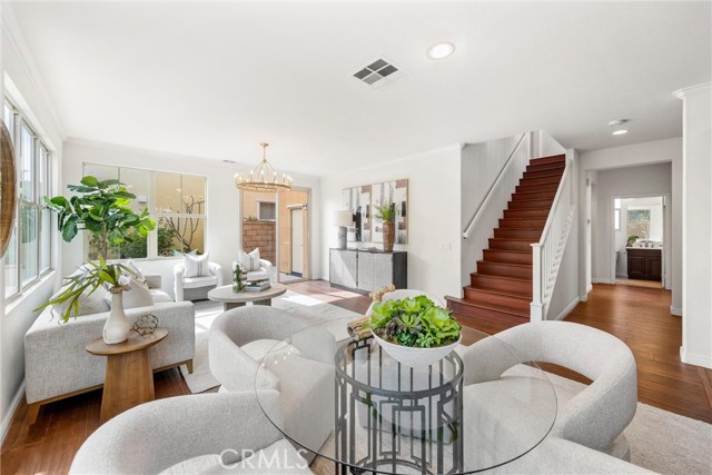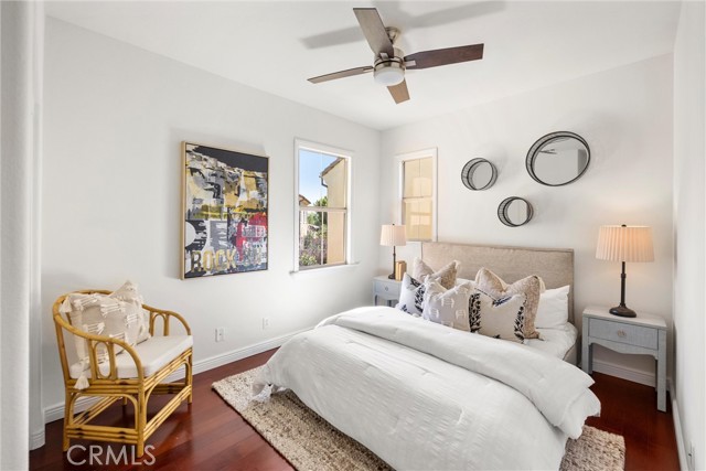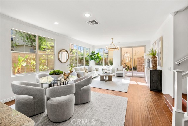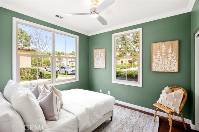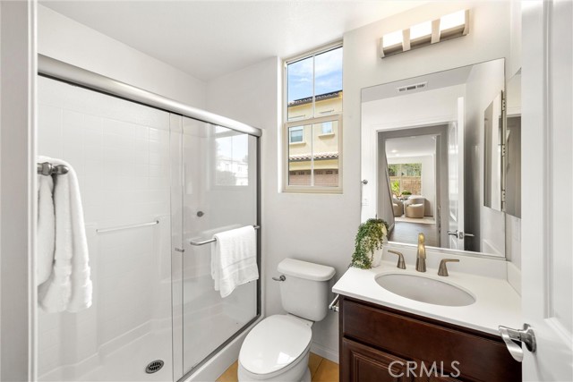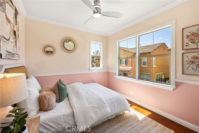 A One-of-a-Kind home, featuring a First-Level ensuite bedroom with a walk-in shower. Discover this charming cottage-style 4 Bed 3 Bath unique detached home in the prestigious Las Colinas community of Portola Springs, Irvine. Natural light flows through countless windows, creating a bright, airy atmosphere that carries throughout the open-concept living space, while botanical landscaping outside brings a peaceful, garden-like view from nearly every room. Wood flooring runs throughout the home, adding warmth and contrast to the light-filled interior. The kitchen opens seamlessly to the living and dining areas, designed for everyday comfort, featuring generous maple wood cabinetry, and timeless crown molding. Upstairs, the primary suite offers a spacious retreat, and a spa-inspired bath finished with marble flooring, dual vanities, a soaking tub set at the center, glass walk-in shower, and a spacious walk-in closet. A convenient second-floor laundry room sits nearby, thoughtfully placed for everyday ease. Additional highlights include a tankless water heater and Energy-Star efficient water softener. Scenic parks, hiking trails, olympic pools, and sports courts conveniently surround the property. Located nearby top-rated Irvine schools—including Portola Springs Elementary and Portola High—and just a short drive to Woodbury Town Center and Irvine Spectrum.