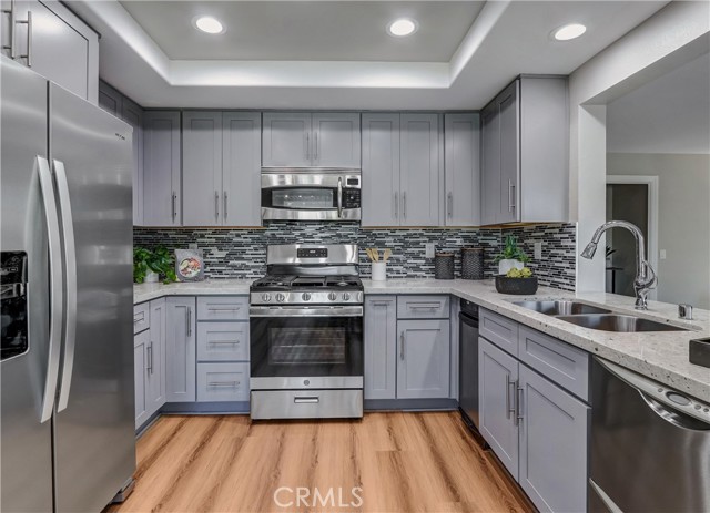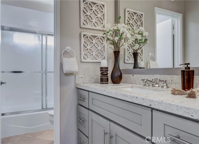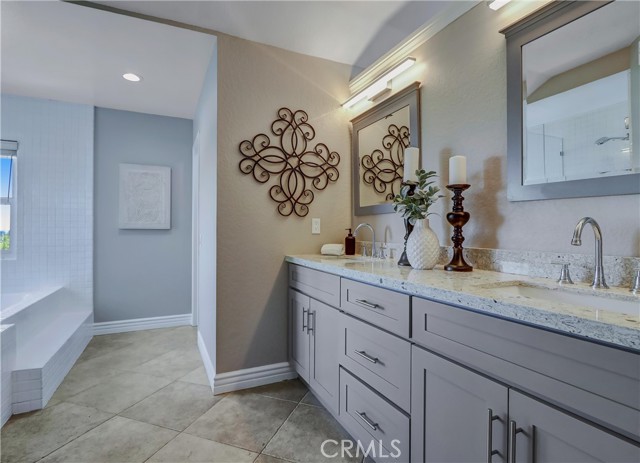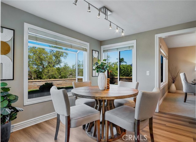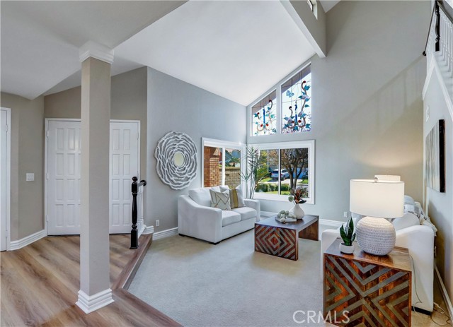 Welcome to your “Forever home!” Superbly located perched high on a cul-de-sac street, backing to a lush greenbelt, and blessed with panoramic Saddleback Mountains and City Lights views, this turnkey beauty has been thoughtfully updated and improved and is move in ready! Improvements include remodeled and updated kitchen and baths, new LVP floors, freshly painted inside and out, reglazed showers and tubs, updated LED lighting, new carpets and more! The classic exterior features and Herringbone brick walkways create a welcoming first impression. Pass through the vibrant double door entry and soak in the freshly painted interior, sleek Luxury Vinyl Plank flooring, charming stained glass accent windows, and soaring cathedral ceilings all creating a graceful living environment. Boasting the largest Galicia floorplan, this home provides ample space for modern families of all sizes. The light filled formal living room with its soaring ceilings is an impressive gathering space. The formal dining room with custom chandelier is perfect for elegant dining and entertaining. The completely remodeled kitchen has been beautifully updated with Granite countertops, glass tile backsplash, timeless Shaker cabinetry, Stainless-Steel appliances including a highly desirable double drawer dishwasher, upgraded pulls and fixtures, recessed lighting, with a sunny breakfast nook overlooking the backyard and an open pass through to the family room. The separate family room has a cozy fireplace and direct access to the backyard patio, a perfect indoor-outdoor living space for entertaining friends and family. The main level includes a highly desirable “In-Law Suite” with a walk-in closet and direct access to the updated guest bathroom. Travel up the light filled staircase and through double doors to the expansive Bonus room with high cathedral ceilings and double sliding doors opening to a large balcony. Ample space for a media room, executive home office, and rec room. The primary bedroom suite is a private retreat with romantic brick fireplace, gleaming updated primary bath with soaking tub and a step-in shower with frameless glass enclosure, walk-in closet, and a private view balcony. The backyard oasis is serene setting for enjoying the views with manicured landscaping, a large patio, and grassy lawn. Walking distance to shopping, close to local schools and parks, easy 5 Freeway access, just minutes from local beaches, plus Lake Mission Viejo membership! No Mello Roos!