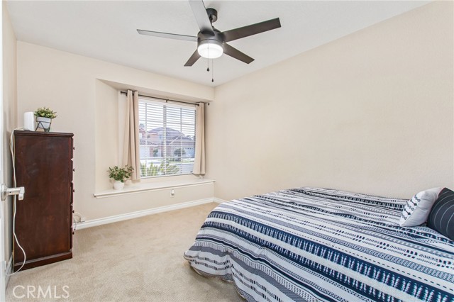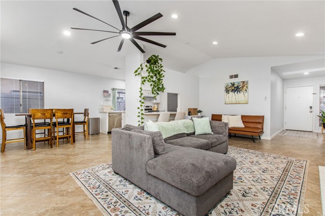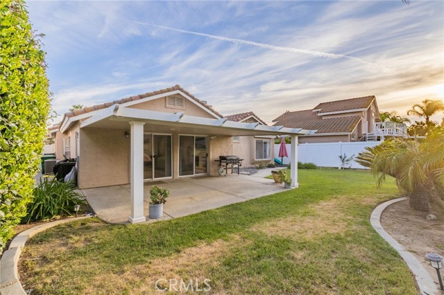 Beautifully updated single story home located in a quiet Menifee neighborhood backing directly to the golf course with no rear neighbors. This 3 bedroom, 2 bathroom home offers 1,329 sq ft of living space with an open concept layout filled with natural light. The living room features a large fan and sliding glass doors that open to a private backyard, perfect for entertaining and enjoying the view. The kitchen features upgraded quartz countertops and flows seamlessly into the main living areas. The primary bedroom offers abundant natural light and a peaceful golf course view. Recent upgrades include a new AC and furnace, new ducting, blown-in attic insulation, and added garage storage. Located in a community with low HOA, residents enjoy access to a pool, community swim/beach area, clubhouse, lake, walking paths, playground, dog park, and golf course. Conveniently close to shopping, dining, and easy freeway access.
