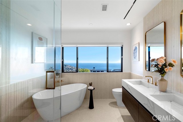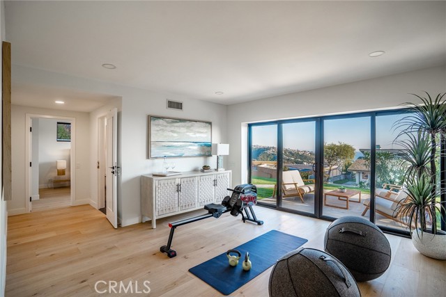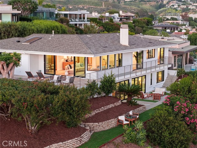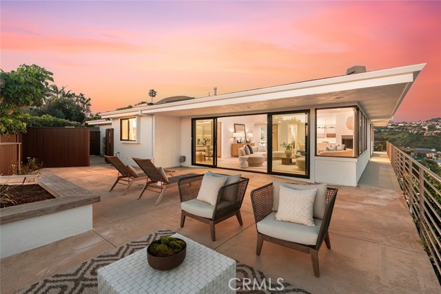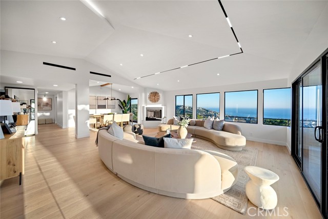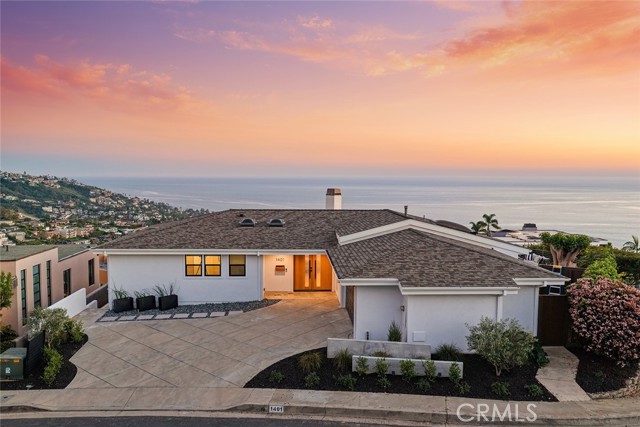 Panoramic ocean views, twinkling city lights, and breathtaking Catalina sunsets set the tone for this beautifully expanded and reimagined Laguna Beach residence. Now offering an additional 619 square feet, the home has been thoughtfully enhanced with a remodeled kitchen, updated bathrooms, new flooring, and an expanded floorplan that includes 5 bedrooms, a dedicated gym, and a private office. Living primarily like a single-level home, the main floor is centered around a sophisticated open-concept design with a spacious great room, dining area, and beautifully updated kitchen, all designed to capture the home’s remarkable coastal backdrop. Also on the main level is a secondary bedroom and a stunning primary suite complete with a private balcony and sweeping ocean views. The lower level provides exceptional flexibility, with additional three bedrooms, office and gym opening to a serene backyard patio. Additional highlights include a Tesla charger, a newer roof installed in 2022, and the rare opportunity to enjoy refined coastal living in one of Laguna Beach’s most sought-after settings. Living here means enjoying the very best of Laguna Beach, renowned beaches, exceptional dining, luxury resorts, art galleries, and a lifestyle that is as inspiring as the views themselves.
