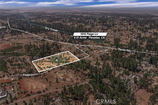 Rare Central Paradise Location for this 6.15 acre lot. Feels like your out of town but you can be grocery shopping in 5 minutes! Fantastic Year Around Creek!!! Imagine driving down your own private lane, across your creek, and up to your homesite nestled on a knoll of your own 6+ view acres of Paradise... so many possibilities. Motivated Seller. Your own compound or modern homesteading, an amazing opportunity to make all of your dreams come true. Seller has water hooked up. The property had two septic systems at the time of the Camp Fire. The home lost was 1,414 square feet. The property is Zoned RR-1 (Rural Residential 1 acre minimum, possible to be able to lot split) This zoning is perfect for horses, chickens, livestock and all your furry friends. a variety of other animals. Beautiful views of surrounding hills and valleys. Discover the variety of flora and fauna including the wildflowers, bulbs, and ferns. Great place to raise your family and room for all your furry friends. Beautiful mountain sunrise and sunsets! Plenty of room to ride your ATV or Quads around the property. Paige is also a paved road! This is a special property.