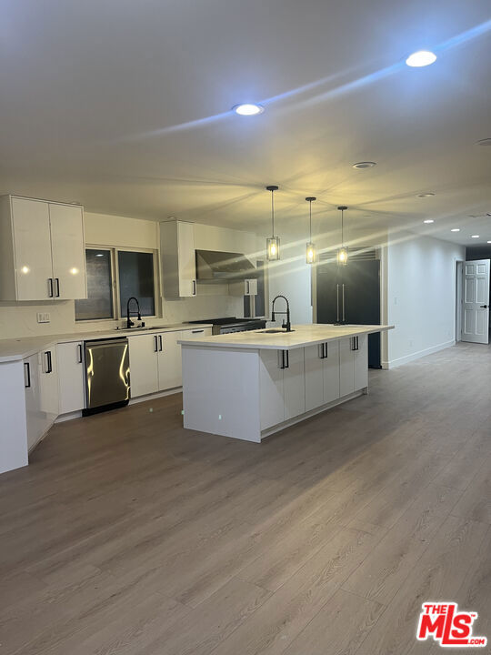 Location, location location! Take advantage of this rare opportunity to enjoy living in this exception location in the heart of Sherman Oaks. This spacious 5 br, 5 ba home is within walking distance to Ventura Blvd, popular dining, shopping and everyday conveniences, the famous Galleria, with your choice of award winning schools nearby. Own or lease in this sought-after neighborhood. Surrounded by multimillion-dollar properties and located just over the hill from Bel-Air, this home features a detached finished garage with a half bath, making it ideal for a conversion to ADU, just pull a permit. Inside this home it has been tastefully updated with new flooring, fresh paint, and brand new cabinets and counters, creating a move-in ready environment with both comfort and style.