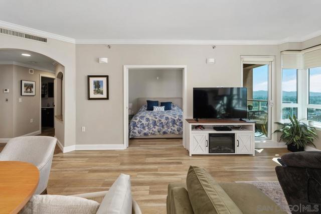 Welcome to 3890 Nobel Dr Unit 1205, a 2-bedroom, 2-bathroom condo in the Pacific Regent community. Pacific Regent is a luxury retirement community for those aged 62 and up, offering an array of amenities. Enjoy 24-hour security, a salon, and a library for convenience. The HOA includes access to a fitness center, heated pool and spa, and meeting rooms for events. Indulge in gourmet restaurant-style dining and room service.