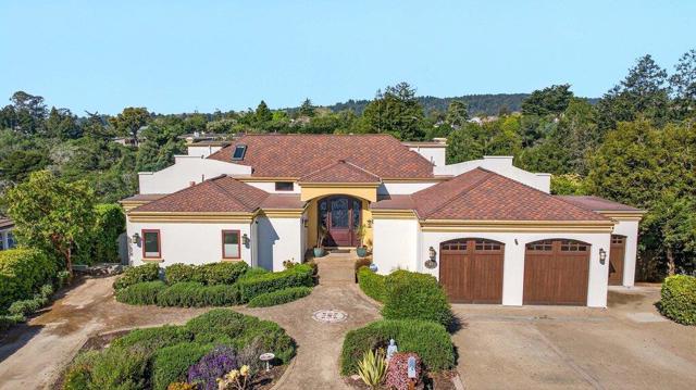 Tucked behind the gates of the exclusive Pasatiempo Estates, this refined Mediterranean style residence sits beautifully on a small cul de sac with views of the Monterey Bay and Santa Cruz Beach Boardwalk! Offering a rare ground floor primary, this property has 3 bedrooms & 2.5 baths on the main level & a full 2 bedroom, 2 bath + living space on the lower floor. Set within one of Northern California's most storied private/public golf enclaves, this homes sits just steps away from the legendary Alistair McKenzie designed Pasatiempo Golf Course, ranked in the top 15 public golf courses in America. Soaring ceilings, expansive windows, ocean and greenbelt views offers a daily backdrop that is both serene and architecturally timeless. Every space invites a meaningful living environment with two potential in-home office areas, including a loft above the Great Room w/ a private ocean-view deck. Solid construction is felt throughout with high-end appliances, a built-in luxury stove hood, espresso maker & a convenient main-floor laundry room. This Pasatiempo home exudes luxury living. Come live moments to the Santa Cruz beaches & amongst the legacy shared with some of the most iconic fairways in the world, adding a layer of heritage that few communities can offer at 41 S Circle Drive.