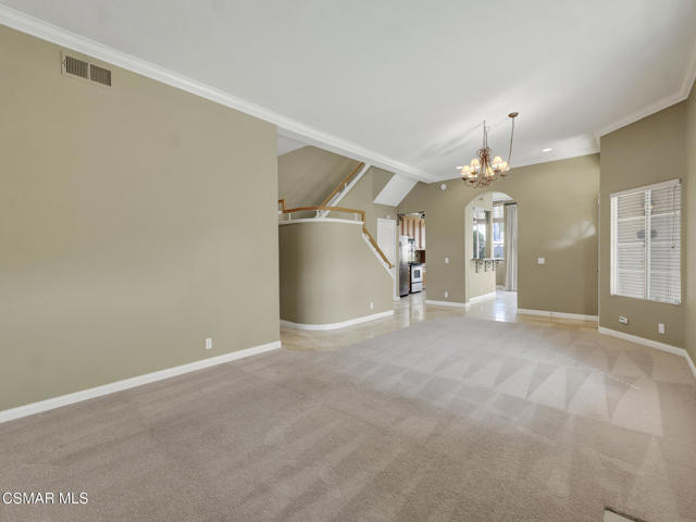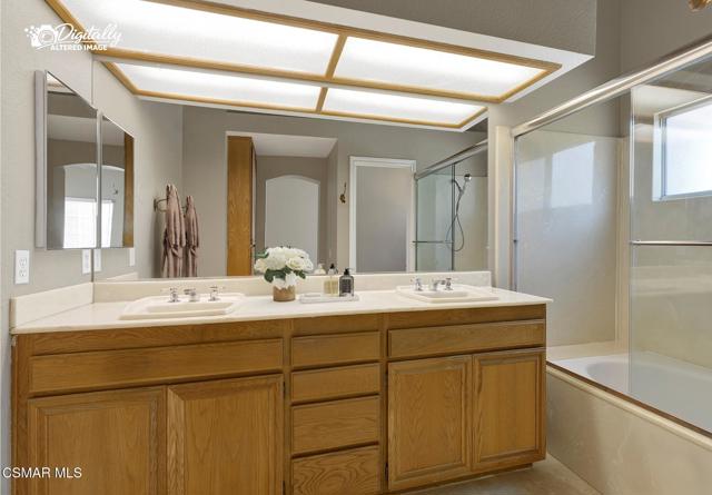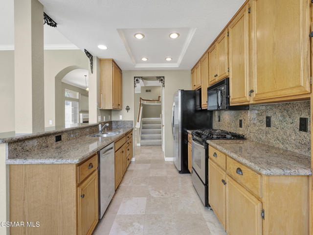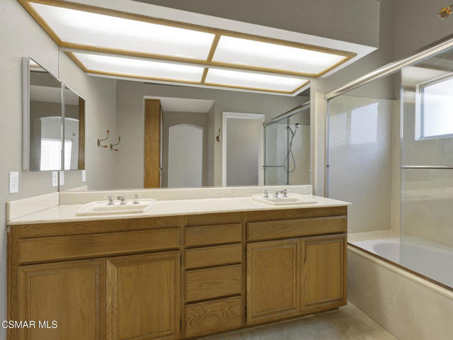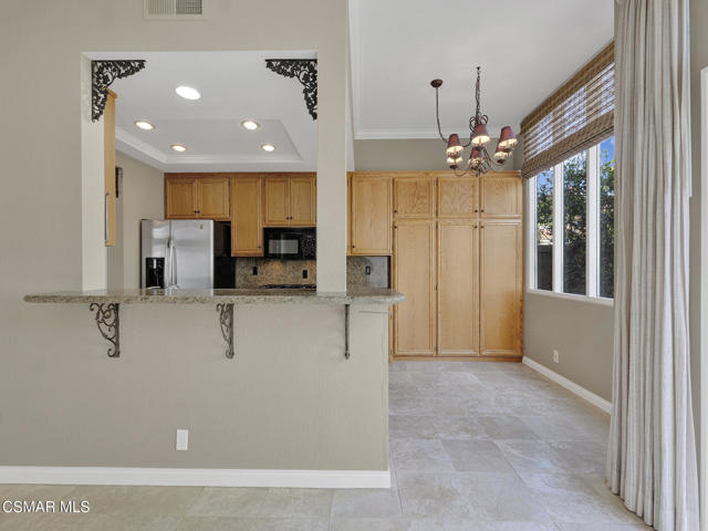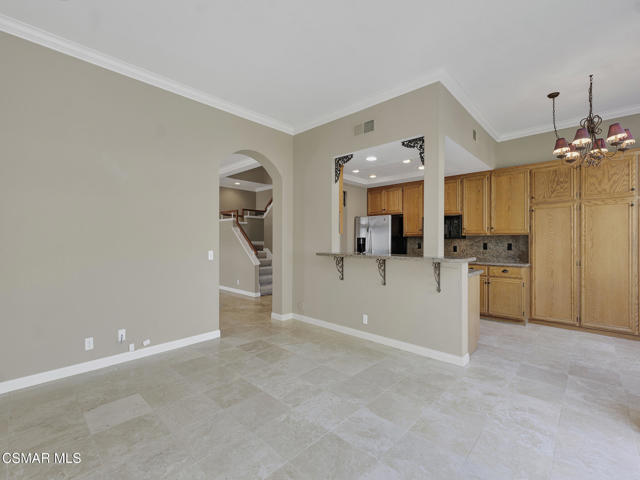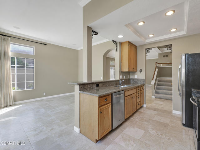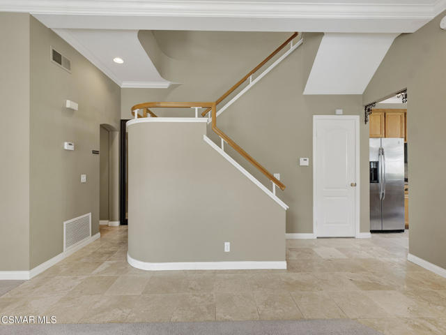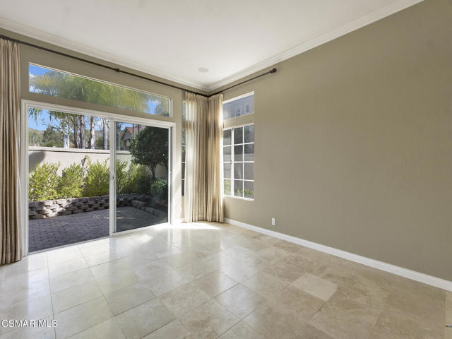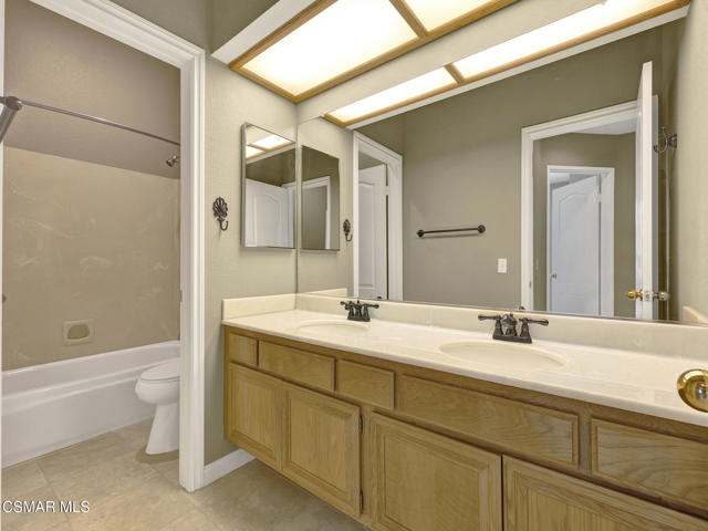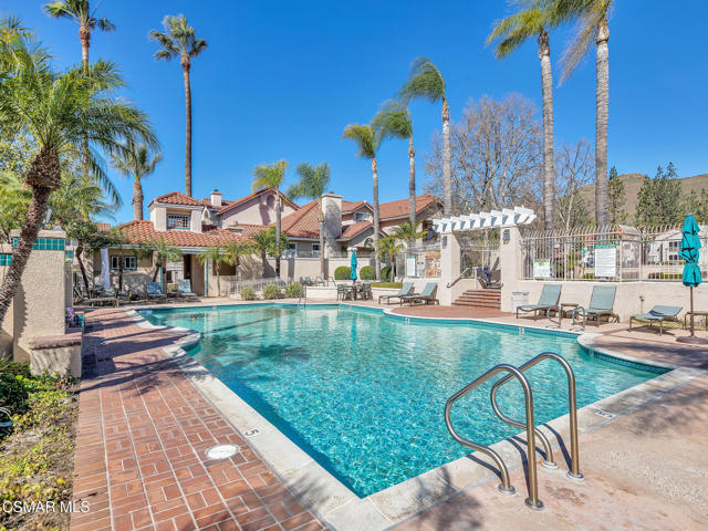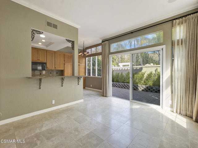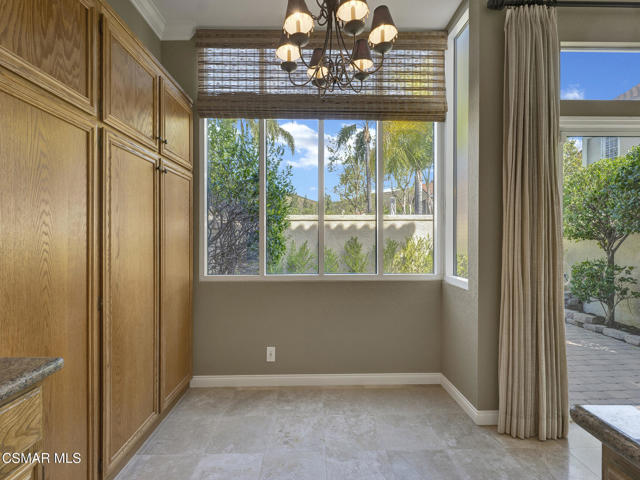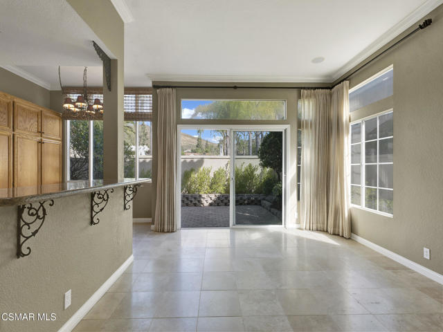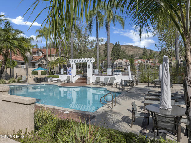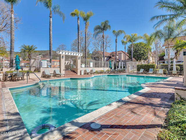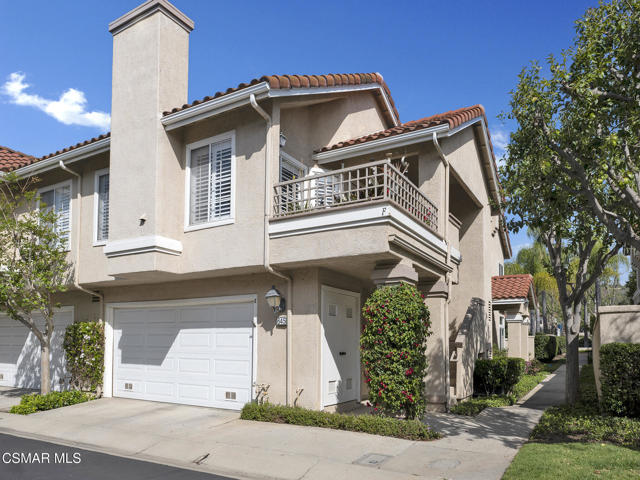 Located in the desirable Village on the Green community, this spacious end-unit home offers the largest floorplan in the neighborhood and a prime location just steps from the pool. With over 1,800 square feet of interior living space, the home feels bright and expansive, enhanced by an abundance of windows throughout.The inviting living room features vaulted ceilings, a cozy fireplace, and flows seamlessly into a separate formal dining area--perfect for entertaining. The well-appointed kitchen offers granite countertops, abundant cabinetry, a walk-in pantry, and a breakfast bar that opens to a generous nook area for casual dining or a family room. A private patio with pavers provides an easy-to-maintain outdoor space, ideal for relaxing or entertaining.The home also includes direct access to a large two-car garage, with washer and dryer hookups.Upstairs, a skylight in the hallway fills the space with natural light. All bedrooms are thoughtfully situated, including a spacious primary suite with mirrored doors at the walk-in closet, dual sinks, and a tub/shower combination. Two additional bedrooms feature mirrored wardrobe doors and share a full bathroom with dual sinks and a tub/shower combo. A convenient guest bath is located downstairs.The community offers a pool, spa, shower area, and plentiful guest parking. Located within the beautifully maintained Wood Ranch master-planned community, residents enjoy close proximity to scenic trails, shopping, and a golf course -making this an exceptional place to call home.