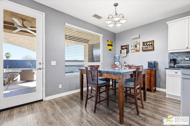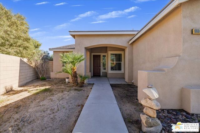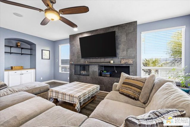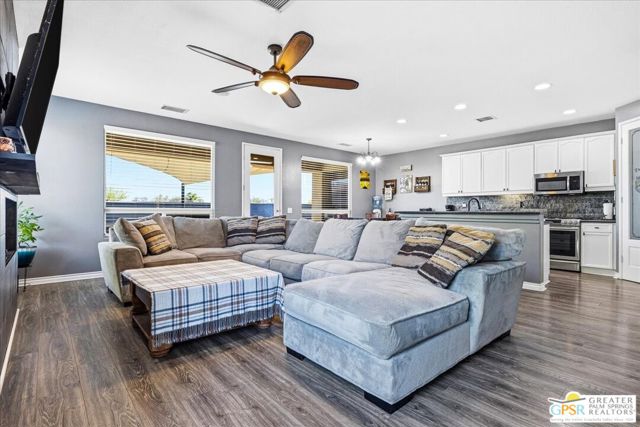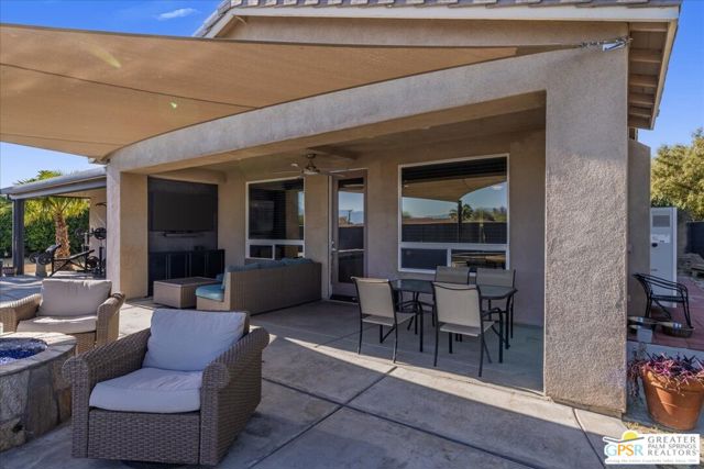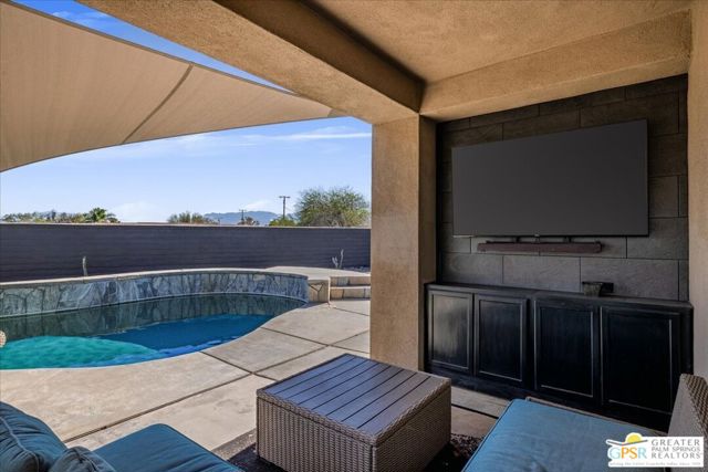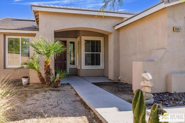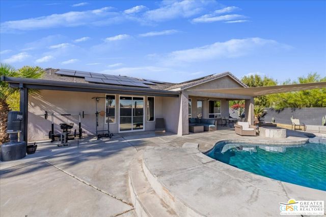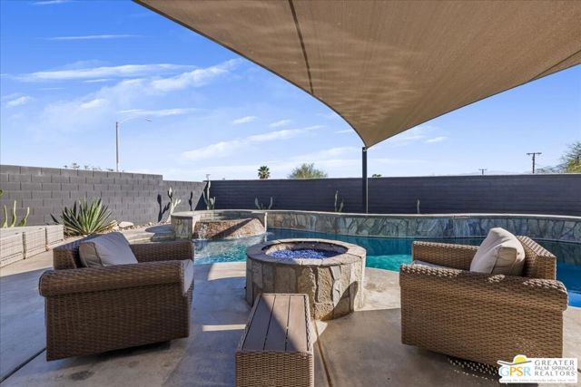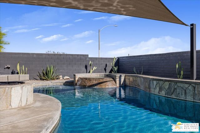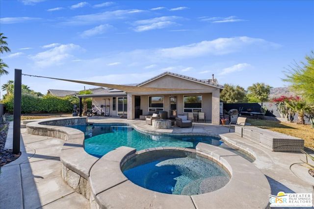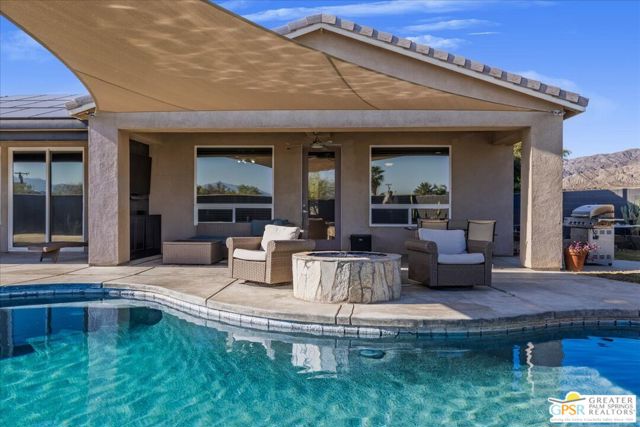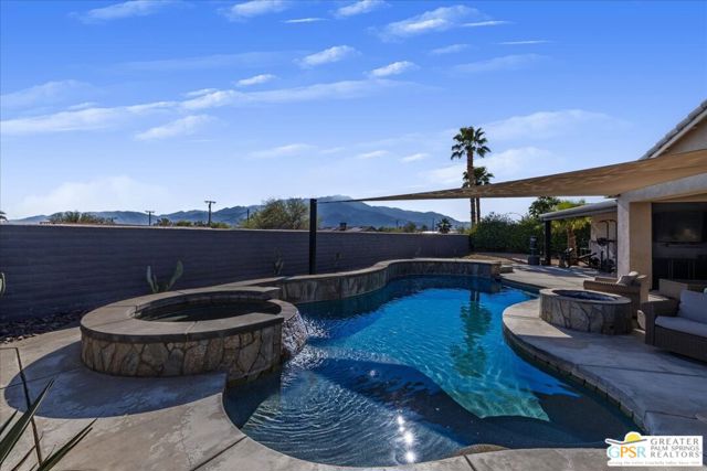 Welcome to this spacious 5-bedroom, 3 bathroom home tucked away at the end of a quiet cul-de-sac in Desert Hot Springs. Located within a gated community, this property offers the perfect blend of privacy, comfort, and scenic beauty, with stunning mountain views right from your backyard.Designed for both relaxation and entertaining, the home features a generous floor plan with ample living space for family and guests. The kitchen and bathrooms have been tastefully remodeled within the last two years, offering modern finishes and updated style throughout. The home also features a cozy gas fireplace, perfect for cooler desert evenings.Step outside to your private oasis complete with a sparkling pool featuring a tranquil waterfall, a fire pit, and a large backyard, ideal for enjoying sunny desert days and peaceful evenings under the stars.This home is equipped with energy-efficient solar panels along with two battery backup units, offering added peace of mind and potential cost savings. The air-conditioned garage adds versatility, perfect for a home gym, workshop, or additional comfort for your vehicles.Enjoy the benefits of a low monthly HOA fee while being conveniently located near local schools and amenities. The cul-de-sac location provides added tranquility with minimal traffic, making it a perfect retreat.Whether you're looking for a primary residence, vacation home, or investment opportunity, this property delivers on space, efficiency, and lifestyle.Don't miss your chance to own a slice of desert paradise. Sale is contingent upon upon sellers purchase of replacement home.