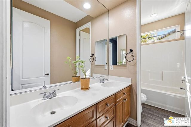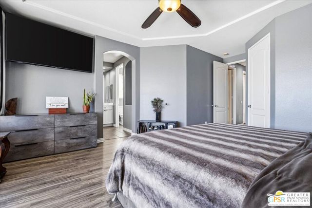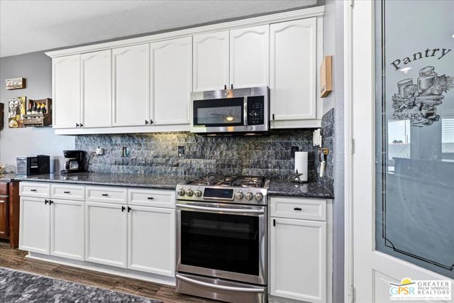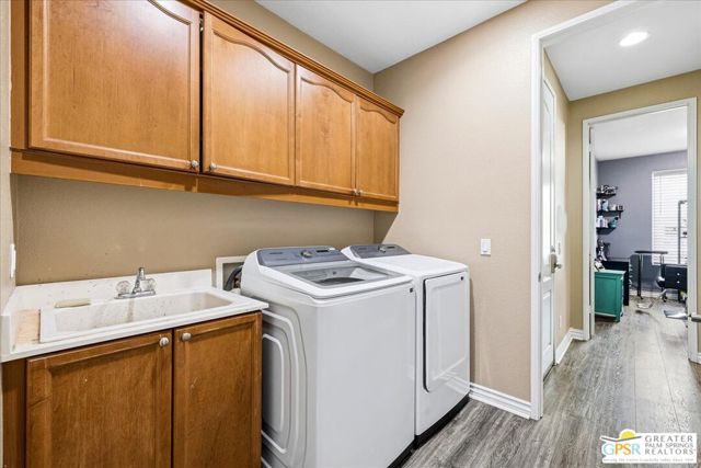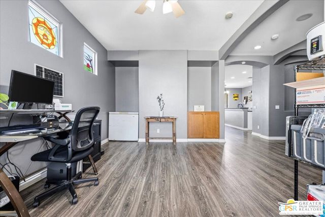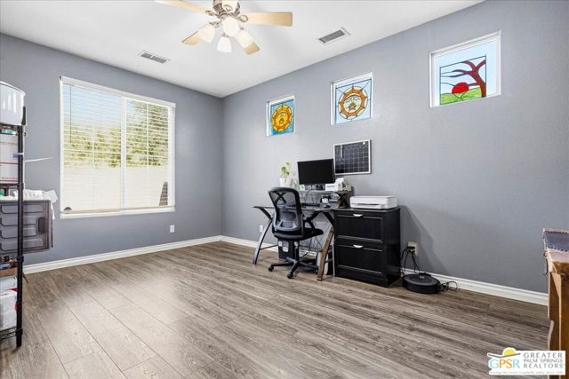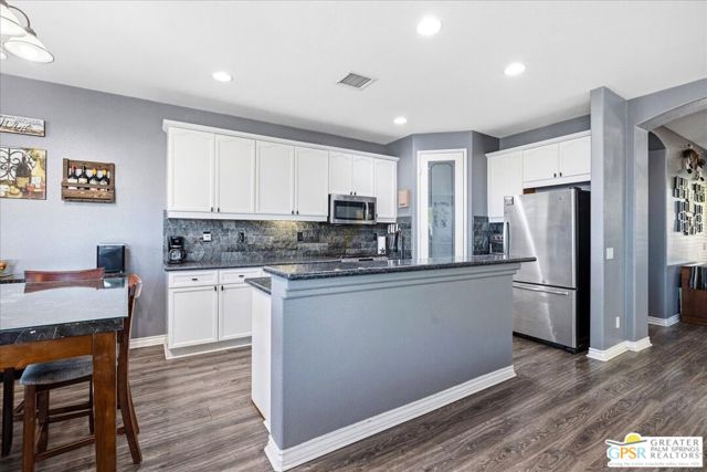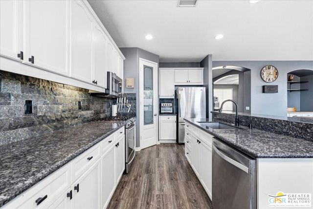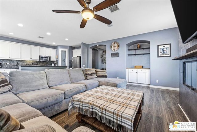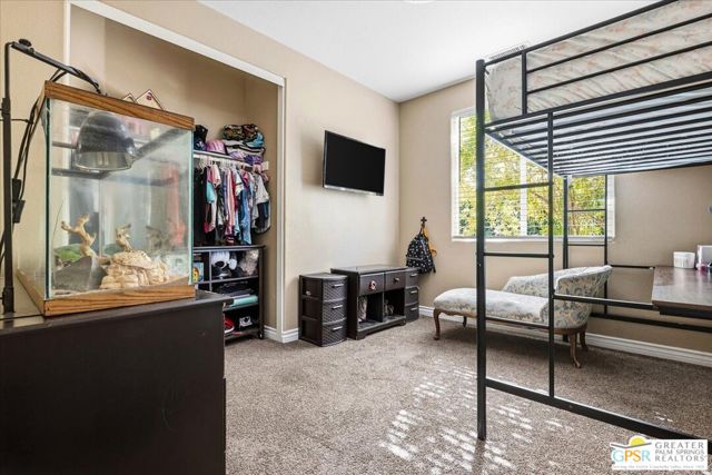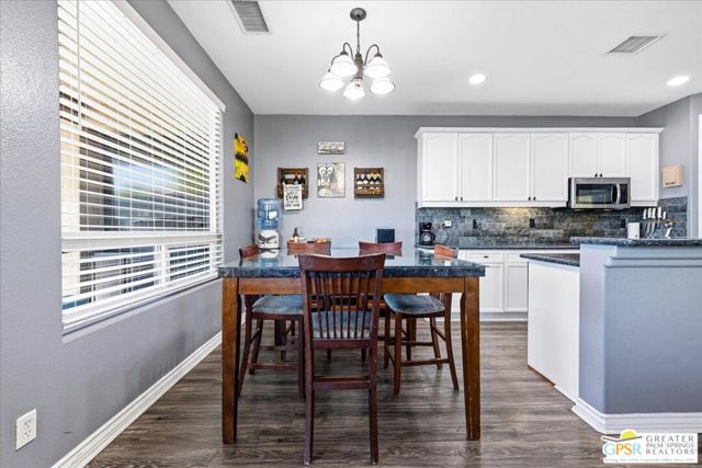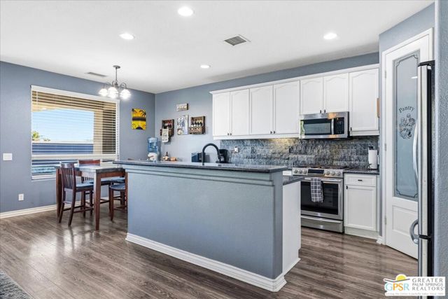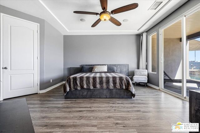 Welcome to this spacious 5-bedroom, 3 bathroom home tucked away at the end of a quiet cul-de-sac in Desert Hot Springs. Located within a gated community, this property offers the perfect blend of privacy, comfort, and scenic beauty, with stunning mountain views right from your backyard.Designed for both relaxation and entertaining, the home features a generous floor plan with ample living space for family and guests. The kitchen and bathrooms have been tastefully remodeled within the last two years, offering modern finishes and updated style throughout. The home also features a cozy gas fireplace, perfect for cooler desert evenings.Step outside to your private oasis complete with a sparkling pool featuring a tranquil waterfall, a fire pit, and a large backyard, ideal for enjoying sunny desert days and peaceful evenings under the stars.This home is equipped with energy-efficient solar panels along with two battery backup units, offering added peace of mind and potential cost savings. The air-conditioned garage adds versatility, perfect for a home gym, workshop, or additional comfort for your vehicles.Enjoy the benefits of a low monthly HOA fee while being conveniently located near local schools and amenities. The cul-de-sac location provides added tranquility with minimal traffic, making it a perfect retreat.Whether you're looking for a primary residence, vacation home, or investment opportunity, this property delivers on space, efficiency, and lifestyle.Don't miss your chance to own a slice of desert paradise. Sale is contingent upon upon sellers purchase of replacement home.