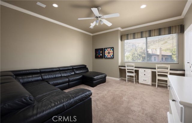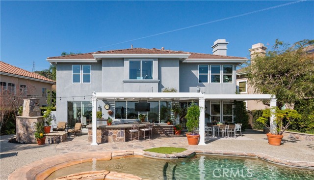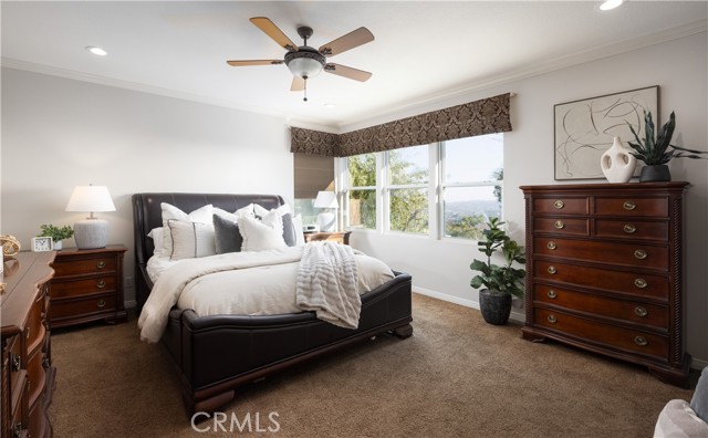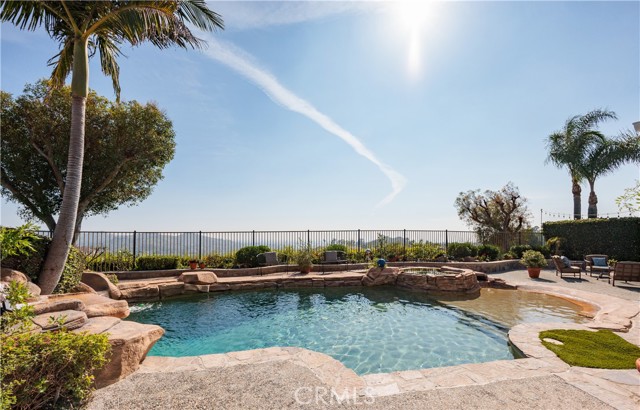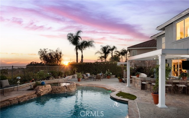 HILLSIDE VIEW HOME | PANORAMIC VIEWS | PRIVATE BACKYARD RETREAT | CUL-DE-SAC LOCATION | GATED PARKRIDGE COMMUNITY | Situated on a premium view lot within the prestigious gated community of Parkridge, this exceptional 5 bedroom, 4 bathroom residence offers 3,039 sqft of living space, blending privacy, comfort, and breathtaking scenery. Tucked away on a quiet cul-de-sac, the home delivers a rare sense of tranquility, with panoramic views stretching across city lights, rolling hills, and distant mountain ridgelines, extending toward Catalina Island and the ocean on clear days. From the moment you enter through the double front doors, a grand entry with soaring ceilings, expansive windows, and a sweeping staircase creates a dramatic first impression while filling the home with natural light. The formal living and dining rooms provide inviting spaces for entertaining, enhanced by large sliding doors that create a seamless indoor-outdoor connection. The kitchen serves as the heart of the home, featuring granite countertops, rich wood cabinetry, a center island, and a window framing the backyard and views. A breakfast nook and walk-in pantry enhance function, while the kitchen opens to the family room with a beautiful fireplace and built in bookcase. A main-level bedroom and full bathroom offer flexibility for guests or multigenerational living, along with a laundry room and three-car garage. Upstairs, the primary suite offers sweeping views of city lights and rolling hills to the ocean, with a cozy fireplace and complemented by a spa-inspired bath with dual sinks, soaking tub, walk-in shower, and two walk-in closets, plus an adjacent retreat ideal for an office, gym, or lounge. Additional bedrooms are generously sized, along with a bonus room or optional fifth bedroom. The backyard showcases the home’s elevated setting with a beach-inspired pool and spa, seating areas, outdoor fireplace, and built-in BBQ, all positioned to capture the views and create a private retreat. The property is located within a secure gated community featuring a neighborhood pool, spa, and sport court as well as being near top-rated schools, dining, and shopping. This is more than a home. It is a lifestyle defined by breathtaking views, privacy, and timeless elegance.