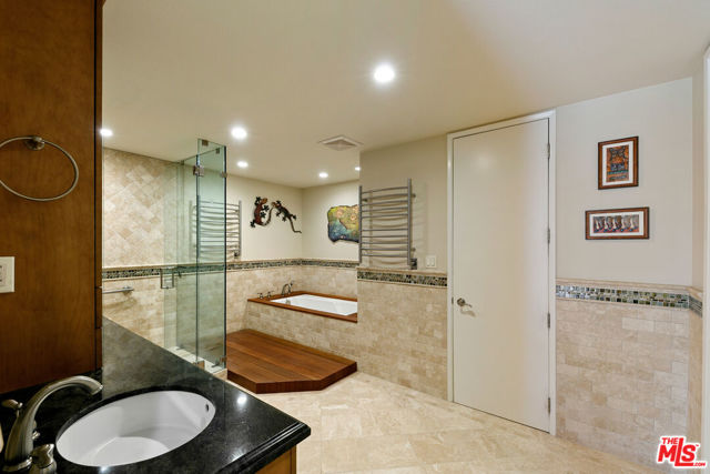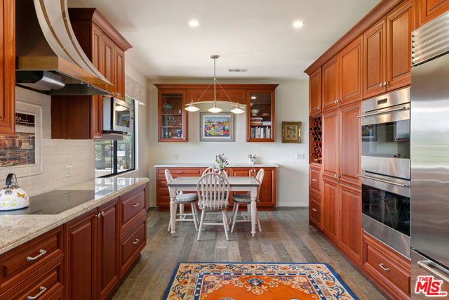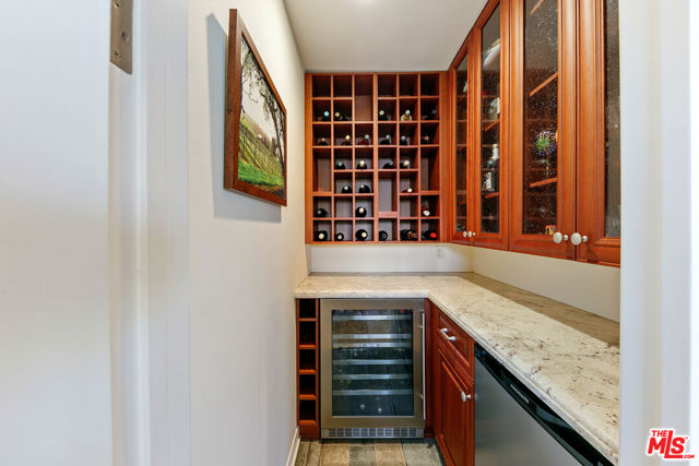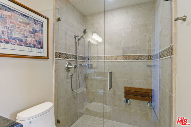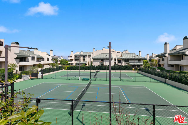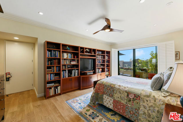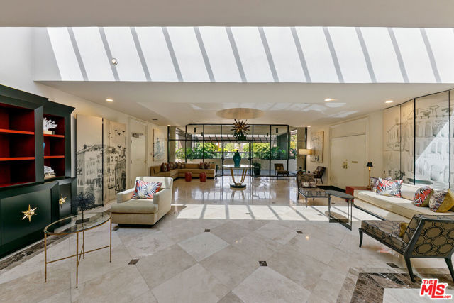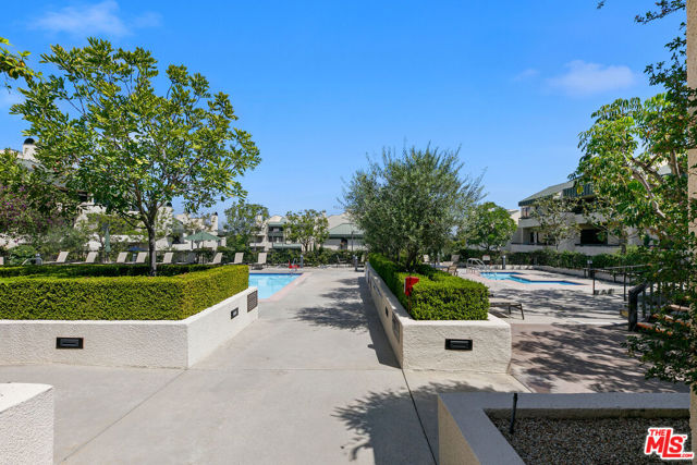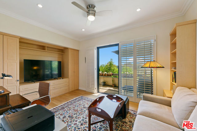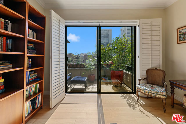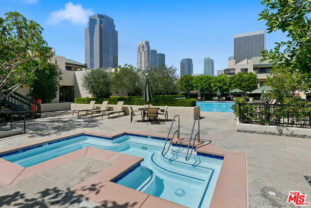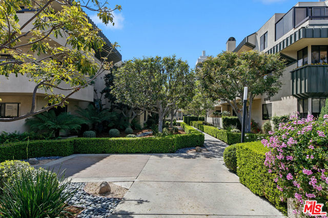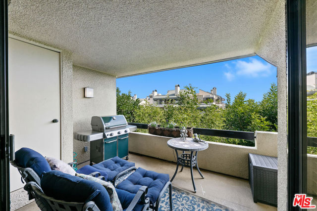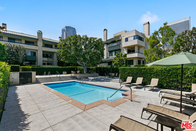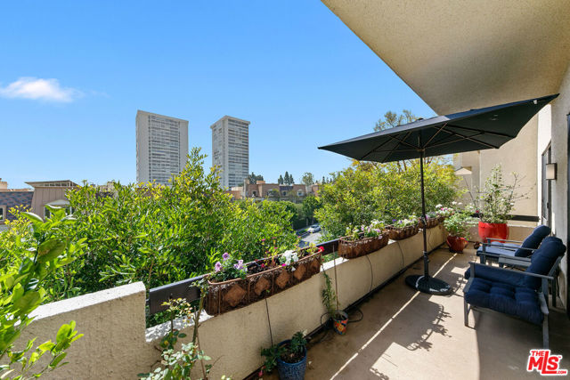 Behind the gates of Century Hill, one of Century City's most secure, resort style communities, this rare single level corner home unfolds like a private retreat. Sunlight pours across French oak floors as custom millwork, grass cloth accents, and a walnut framed fireplace create a warm, elegant welcome. The chef's kitchen is a standout, with custom cherry cabinetry, granite counters, Italian porcelain floors, and premium Subzero, Wolf, and Miele appliances. The formal dining room leads to a beautifully crafted wine room, while the serene primary suite offers remote blackout shades and a spa caliber bath with heated soaking tub, walk-in shower, and custom cabinetry. A second ensuite bedroom, powder room with copper sink, full laundry room, and extensive built-ins complete the interior. Two spacious decks extend the living space outdoors, surrounded by the quiet, parklike grounds Century Hill is known for and vistas towards Griffith Park Observatory and beautiful Le Parc, Parisian Village, across the way. Modern comforts include Nest climate control, LED lighting, an 80-gallon recirculating water heater, and plantation shutters. Exceptional parking: three deeded spaces, including one with a Level 2 EV charger, plus a large private storage room. Century Hill offers 24 hour guarded security, five pools/spas, tennis courts, racquetball, top of the line fitness center, and a well-equipped clubhouse with catering options, moments from Westfield Century City and Beverly Hills. A rare blend of luxury, privacy, and lock and leave peace of mind.