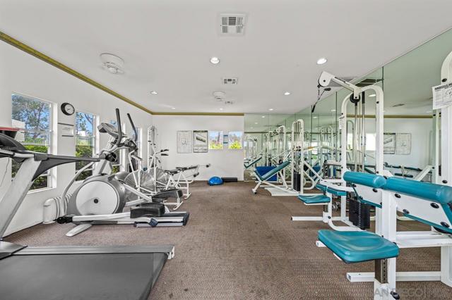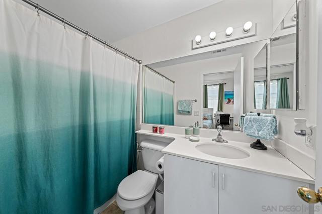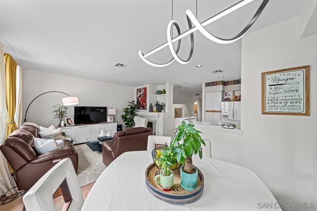 Welcome to this spacious two-story townhome located in a VA/FHA-approved complex. Featuring 9-foot ceilings on both levels, the home offers a bright, open, and inviting atmosphere throughout. A standout feature is the highly desirable downstairs flex space, complemented by a nearby powder room. This versatile area can easily serve as a third bedroom, home office, gym, or additional storage, making it a valuable extension of the living space. Upstairs, both generously sized bedrooms include private en-suite full bathrooms, providing ideal separation and privacy. The primary suite is further enhanced by a large walk-in closet. The kitchen has been tastefully upgraded with a newer stovetop, oven, dishwasher, and microwave, while the carpet has been replaced in recent years, adding to the home’s overall appeal. Enjoy seamless indoor-outdoor living with an oversized 21' x 10' private patio, significantly larger than typical townhome outdoor spaces and perfect for relaxing or entertaining. Additional highlights include an attached two-car garage and a full-size washer and dryer located in a dedicated laundry room with ample space for additional storage. Ideally situated just steps from the community pool and fitness center, this home is set within a quiet, well-maintained community. The location offers exceptional convenience, just moments from Poway Road with abundant shopping, dining, and entertainment options, as well as nearby parks and scenic hiking trails. Commuters will benefit from easy access to both the 15 and 56 freeways. The HOA provides excellent value by covering roof maintenance, trash pick-up, water, landscaping, etc. helping to simplify homeownership and reduce upkeep responsibilities. Located within the highly regarded Poway Unified School District, widely recognized as one of the top-rated districts in San Diego County, this home presents an outstanding opportunity to enjoy comfort, flexibility, and convenience in a prime location. This is a must see!
