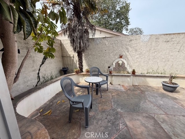 Bring your tools and imagination to this end unit 3 bdrm, 2 bath home. The corner location is ideally located and the large private patio area is a dream addition to this home. The possibilities are endless here for a complete remodel and updating of this home. There has been a newer roof replacement and the open vaulted ceiling makes this home seem so much larger. Wood burning fireplace for those cozy nights. Indoor laundry center with full size appliances included. Ideally located close to the beach area and shopping and the 101 Frwy.