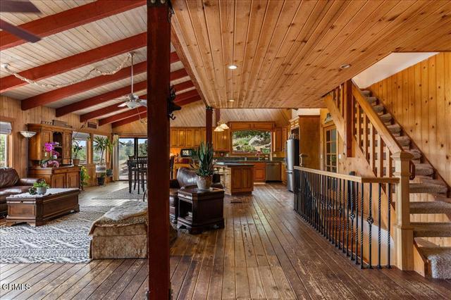 Storybook Setting! Tucked quietly at the end of a cul-de-sac in Bear Valley Springs, this one-of-a-kind property unfolds with breathtaking views that stretch across Bear Valley and into the Cummings Valley. You'll experience an ever-changing backdrop of light, sky, and season.Originally built in 1977 and thoughtfully expanded, the home offers a layered living experience that feels both spacious and deeply inviting. The main level is anchored by a stunning open concept great room where distressed wood flooring, and natural light create a space that is as comfortable as it is connected. The kitchen, finished with granite countertops, flows effortlessly into the dining and living areas which is perfectly positioned for everyday and effortless living.What truly sets this home apart is the beautifully finished walk-out lower level, a space that feels less like a basement and more like its own private retreat. Rich pine wood flooring, a generous secondary living room, three additional bedrooms, and a full bath create incredible flexibility for guests, multi-generational living, or inspired uses of space.Upstairs, a charming loft and dedicated office overlook the living spaces below, offering a quiet place to work, create, or simply take in the surrounding landscape.Set on 1.27 acres beneath a canopy of majestic oaks, the outdoor living is just as compelling. A spacious patio extends from the dining area, inviting you to slow down, gather, and soak in the peace and privacy that define this special setting with composite decking.With natural gas, central heat and air, and a layout that adapts to the way you live, this is more than a house...it's a place to land, to breathe, and to stay awhile.