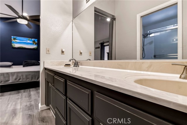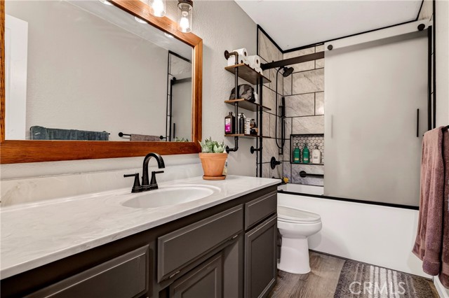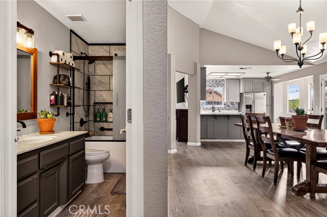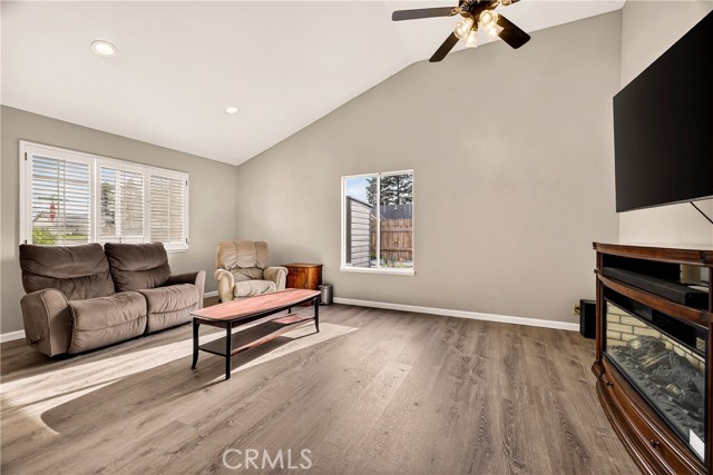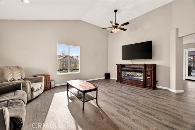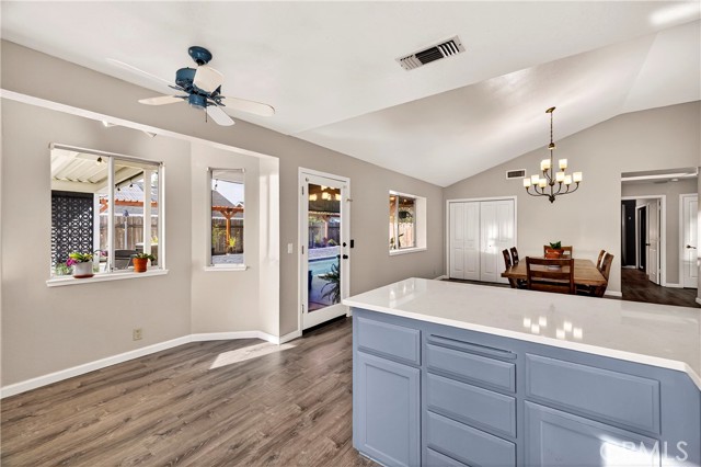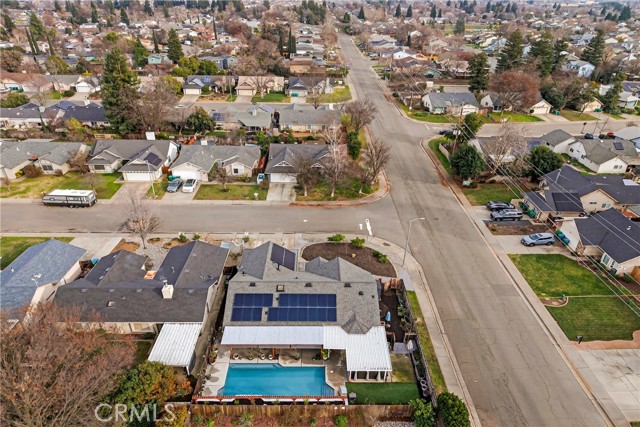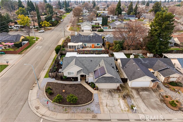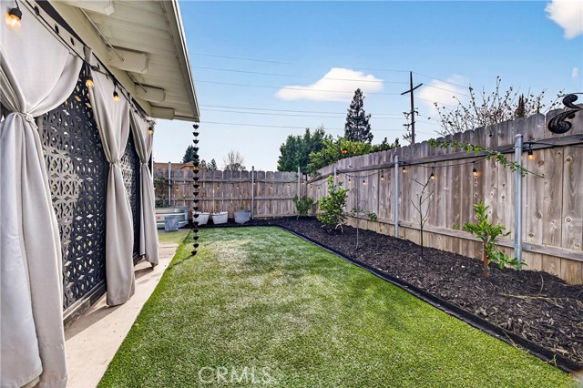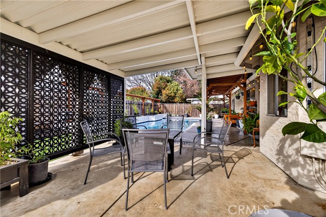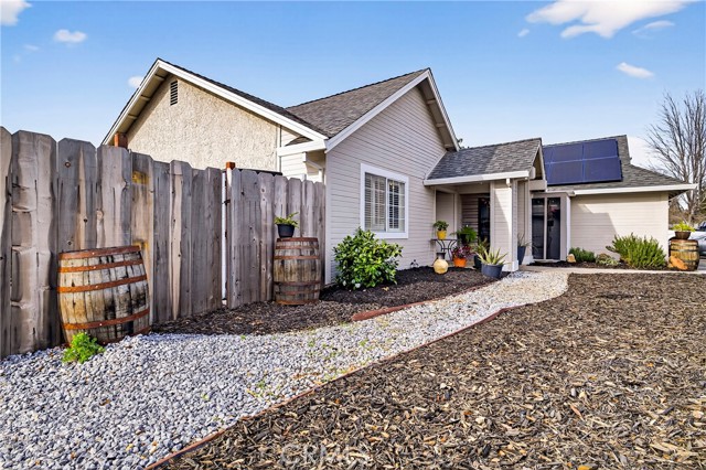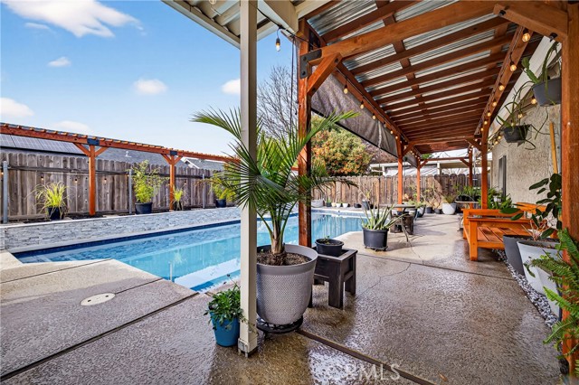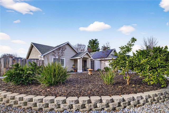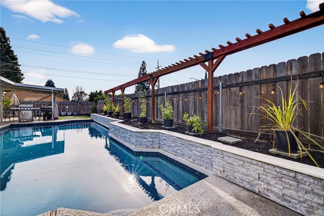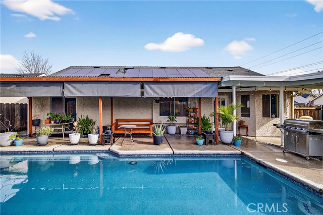 Beautifully Upgraded Home with Owned Solar and Resort-Style Backyard! This stunning home offers an owned 8.082 kW solar system with 28 micro-inverter panels, keeping energy costs low all year long. The seller has recently completed an extensive backyard renovation featuring a Pebble Tech resurfaced in-ground pool, elegant ledger stone and marble accent wall, and a stylish planter area—creating an unforgettable outdoor living space. Inside, you’ll find comfort and modern luxury with a new high-end Lennox central heat and air system and 2025 luxury plank flooring throughout. The upgraded kitchen showcases Cambria Quartz countertops, a beautiful tiled backsplash, Samsung stainless steel appliances, freshly painted cabinets, a deep 10" farm sink, and a cozy bay window breakfast nook. The 6-foot eating bar provides additional space for dining or entertaining. The spacious living room impresses with vaulted ceilings, recessed lighting, plantation shutters, and a new ceiling fan/light fixture. Off the kitchen, an additional living or dining area offers vaulted ceilings, a pantry closet, and glass door access to the backyard retreat. The primary suite features vaulted ceilings, a slider to the backyard, and mirrored closets. The primary bathroom includes dual sinks, a solid surface countertop, a new toilet, and a sleek step-in shower with glass doors. The guest bathroom has been upgraded with a luxurious 17" deep soaking tub, Carrara marble tile walls, glass enclosure, and a new toilet. The backyard is an entertainer’s dream, featuring the resurfaced Pebble Tech pool, granite and marble ledger stone accent wall, and large 30-ft covered pergola with roll-down sunshades. A second covered patio adds 170 sq. ft. of shaded relaxation space. On the south side, a cross-fenced garden area with raised garden beds. Currently growing are a lemon, orange, lime, and tangerine trees which takes full advantage of the beautiful southern sun—perfect for homegrown enjoyment! This property truly blends energy efficiency, style, and resort-quality living—your personal paradise awaits!
