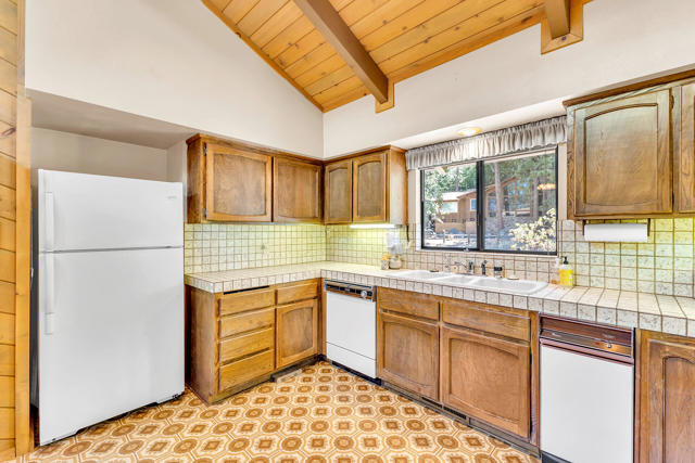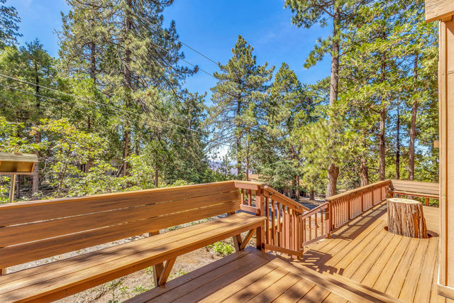 Timeless Mid-Century Retreat in the Pines. Step into this 1978 mid-century mountain home, rich in vintage charm and architectural character, evoking the warmth and iconic style of classic 1970s design. Defined by clean lines, natural textures, and an effortless indoor-outdoor connection, the home offers a balanced blend of nostalgia and modern livability. Featuring 2 bedrooms, 2 bathrooms, and a versatile den with a built-in wet bar--ideal for entertaining, a cozy office, creative studio, or potential 3rd bedroom--the layout provides flexibility for both full-time living and weekend escapes.The inviting living area is anchored by vaulted ceilings, expansive windows, and abundant natural light that highlights the home's architectural details. A classic brick fireplace serves as a warm focal point, creating an ideal setting for relaxing evenings or gathering with friends and family. The natural flow between living, dining, and adjacent spaces enhances both comfort and functionality, making the home feel open yet grounded.Sliding glass doors with locking security screens open seamlessly to the outdoors, extending the living space and inviting in the surrounding mountain environment. Whether hosting or unwinding, the connection to nature is felt throughout. Thoughtful upgrades include a new forced-air heating and air conditioning system for year-round comfort, integrated smart home features, and an exterior camera security system for added ease and peace of mind.The wraparound deck offers an exceptional outdoor living experience--perfect for morning coffee among the pines, dining al fresco under the stars, or simply taking in the fresh mountain air and seasonal surroundings. Multiple vantage points create space for both quiet moments and entertaining, enhancing the overall lifestyle this home provides.A detached 2-car garage offers ample storage for vehicles, recreational gear, or workshop potential, and includes washer and dryer hookups for everyday convenience.Blending timeless mid-century design, thoughtful updates, and a serene natural setting, this property presents a rare opportunity to own a distinctive Idyllwild retreat that captures both architectural style and the essence of mountain living.
