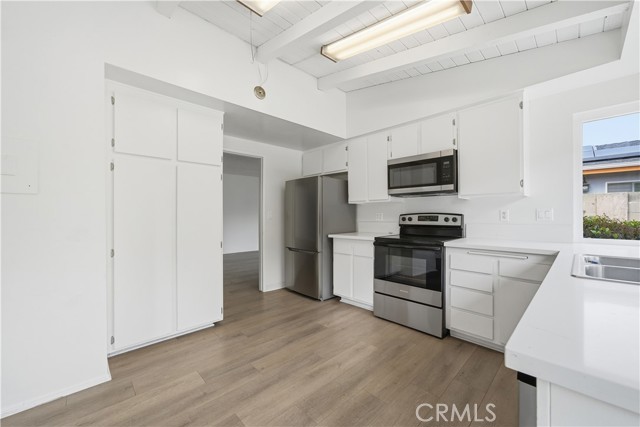 This charming single-family residence offers four bedrooms, 2.5 bathrooms, and a massive loft room ideal for a second family room, home office, or could be converted into more bedrooms. Recently retrofitted with all new vinyl windows and sliders throughout combined with updates made in 2024 provide a fresh clean slate to customize your dream home! Immerse yourself in the tasteful upgrades throughout, featuring waterproof luxury laminate wood plank flooring, natural color palette, and carpet throughout upstairs. The kitchen and bathrooms boast upgraded quartz countertops. The kitchen is complemented by brand-new stainless-steel appliances, large stainless-steel sink and faucet. Enjoy the spacious layout with generously sized rooms, including a master bedroom conveniently located downstairs. Step outside to a wrap-around backyard and a large front yard, providing ample outdoor space for various activities. The two-car garage is accommodating, with storage above, washer/dryer hookups and a handy storage nook built into the garage wall.