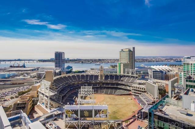 Welcome to ICON in East Village, where sophisticated urban living meets exceptional convenience. This chic 1-bedroom, 1-bathroom condo, covering 621 square feet, is a showcase of contemporary elegance. Experience the contemporary charm of exposed concrete walls and expansive windows that flood the space with natural light. The kitchen boasts stainless steel appliances and sleek granite countertops, complemented by rich wood floors. With an in-unit washer/dryer and a private balcony offering stunning city views, comfort is at your fingertips. ICON's HOA provides a well-rounded lifestyle with unparalleled amenities, including a deluxe full-size gym. Enjoy high-speed fiber optic WiFi, excellent service, and management available 24/7, with the only external bill being your electric bill. Unique to ICON, residents have access to one of only two skyboxes in downtown San Diego—a coveted feature that others pay memberships for, included in your living experience here. Just one street crossing away, the entrance to the marina and luxurious waterfront restaurants, including the Hyatt, Marriott, Hiltons, and Seaport Village, await. This rare opportunity offers a resort-style experience right in your backyard, less than five minutes away. Embrace luxurious city living at its finest. Welcome home!
