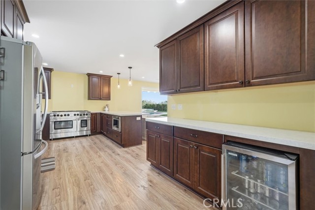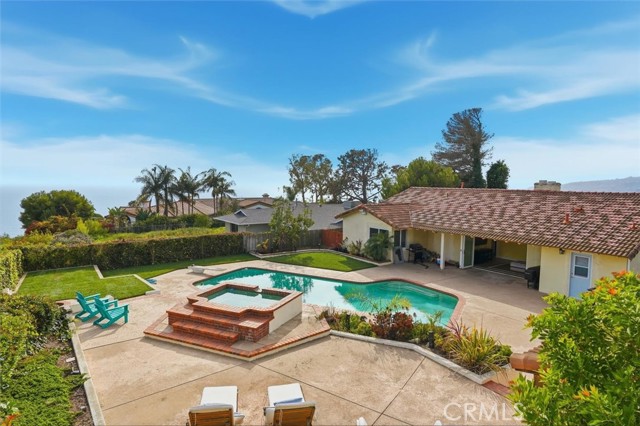 Completely renovated and taken down to the studs, this exceptional residence offers a rare opportunity to own a truly turnkey home in the coveted Ladera Linda Neighborhood of Rancho Palos Verdes. Where every major system and finish has been thoughtfully upgraded. No detail has been overlooked. The home features all new water, waste, and gas lines, along with a new furnace located in the attic and enhanced with Google-controlled Wi-Fi smart technology. The entire electrical system has been replaced, including a new panel, recessed lighting throughout, and upgraded outlets. Inside, the home showcases all-new scratch-resistant flooring, custom closets in every bedroom, and fully remodeled bathrooms featuring elegant finishes, glass shower enclosures, double showerheads, and enhanced storage. Both the living room and family room are anchored by stunning stone fireplaces, replacing the original brick for a more sophisticated, modern aesthetic. The heart of the home is a beautifully redesigned kitchen, complete with a 48-inch BlueStar range with eight burners, new dishwasher, farmhouse sink, wine fridge with dual temperature control, and thoughtfully curated finishes—perfect for both everyday living and entertaining. Seamless indoor-outdoor living is achieved through a panoramic door that opens from the family room to a spectacular backyard retreat. The expansive, flat yard offers breathtaking ocean views, a large pool with diving board, an outdoor bathroom and ample space for entertaining, relaxing, or creating your dream outdoor environment. Tankless water heater, LifeSource whole-house water filtration system, New washer and dryer hookups, Smart door lock system, Fully integrated security system with six hardwired, night-vision exterior cameras plus Ring cameras in front and back, Surround sound system in the living room, backyard, and garage. The garage has been transformed into the ultimate man cave and fitness retreat, featuring rubber gym flooring, space for equipment and weights, and multiple large-screen TVs—ideal for sports enthusiasts or private training. With all doors replaced, high-end upgrades throughout, and a seamless blend of technology and design. A rare offering combining quality craftsmanship, modern amenities, and incredible outdoor living with ocean views. Walk to Ladera Linda community center for a walk around the track, pickle ball, basketball or for the amazing views. Close to ward winning schools, restaurants and Trump Golf Club.