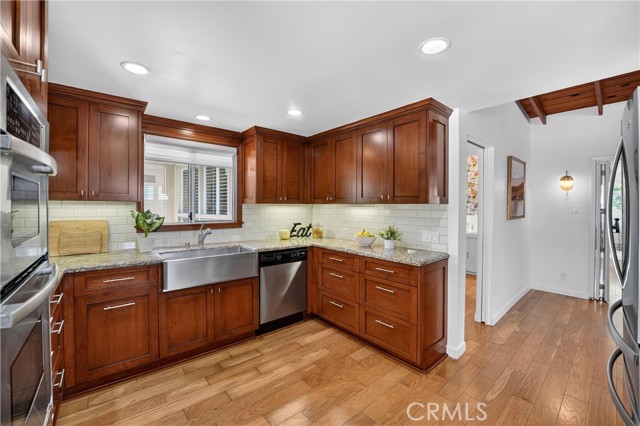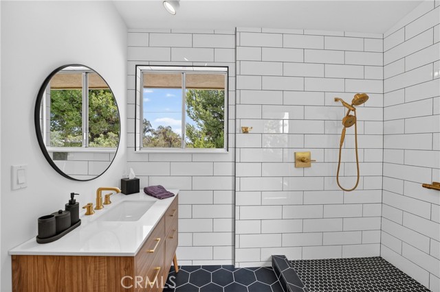 Mid-Century Modern Masterpiece! Set on nearly 30,000 square feet of flat, usable land across two parcels, 1372 and 1400 Puente Street present a rare opportunity to own an exceptional estate in the heart of Brea. Offering approximately 3,048 square feet of living space, this one-of-a-kind property features 4 bedrooms (including 2 primary ensuites), 3.5 bathrooms, and endless potential to create your dream estate with room for an additional home, ADU, pool, sport court, RV garage, guest house, or expansive entertaining grounds. The home’s timeless character is highlighted by vaulted and cathedral ceilings, exposed beams, large windows, plantation shutters, and preserved original 1950s design details blended beautifully with extensive modern upgrades throughout. Recent improvements include a new roof and fascia boards, newer HVAC systems and water heaters, copper plumbing, remodeled bathrooms, new interior paint, new Lutron switches and outlets, and new interior and exterior door hardware. A double-door entry opens to a spacious living room with vaulted ceilings, a dramatic fireplace with gas logs, and oversized windows that fill the home with natural light. The remodeled kitchen offers granite countertops, subway tile backsplash, custom cabinetry, stainless steel appliances, and a five-burner electric cooktop. Adjacent dining spaces feature beamed cathedral ceilings & a modern chandelier. The expansive family room offers recessed lighting and wood plank flooring. Upstairs, the primary suite features vaulted ceilings, track lighting, a private balcony, a generous walk-in closet area, and a beautifully updated bathroom with Art Deco-inspired tile and newer vanity and fixtures. A second primary suite provides flexibility for guests or multigenerational living Additional features include a spacious laundry room with built-in storage, updated secondary bathrooms with Kohler fixtures and designer finishes, and generously sized secondary bedrooms with ceiling fans and plantation shutters. The backyard is a true private retreat, featuring three separate patio areas, large grassy spaces, mature fruit trees including citrus, avocado and more, a workshop with storage, and room to expand or customize. The second parcel offers gated backyard access, RV parking, a two-car carport, and additional storage. This is a rare opportunity to own an iconic Mid-Century Modern property with character, land, versatility and future upside in one of Brea’s most desirable locations.