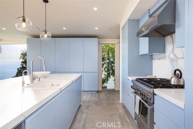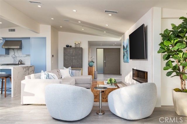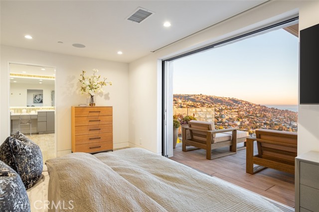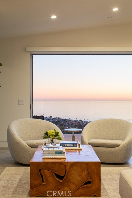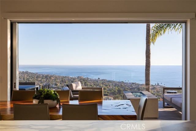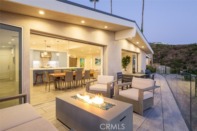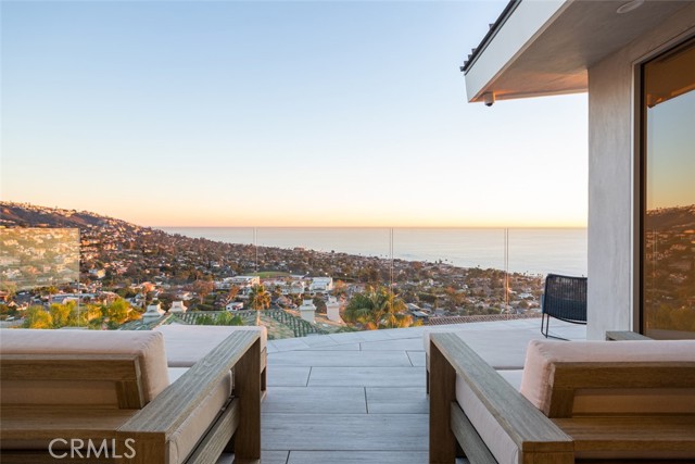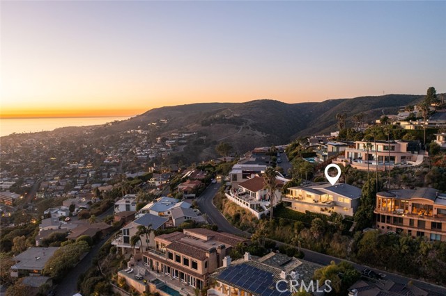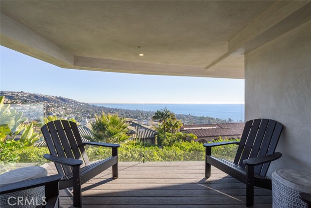 Designed by acclaimed architect Chris Light, and rebuilt from the ground up in 2021, this pristine contemporary home offers some of the most exceptional views that Laguna Beach has to offer. Panoramic coastline, Catalina, sunset and sparkling city light views greet entrants upon opening the front door. The kitchen features custom Italian cabinetry, an oversized island, a professional-grade appliance suite, and is open to the living and dining areas which offer sit-down ocean views. A pair of large pocketing Fleetwood sliders open to the expansive deck to capture multiple breathtaking vantage points. The main-floor primary suite with ocean views features a large soaking tub, separate shower, walk-in closet, and balcony access. Downstairs features an additional living space and full kitchen, making entertaining a breeze and offering flexibility. Three additional generously-sized bedrooms, including one on the main floor, and three bathrooms complete the home. With custom design accents, thoughtful lighting, smooth coat Venetian plaster walls, imported tiles & cabinetry, seamless glass railings, as well as full smart home integration with lighting and music, RO water system, and automatic window shades, this home is not just beautiful; it's perfect. Located on a quiet cul-de-sac, minutes from the world renowned restaurants and beautiful beaches of Laguna Beach, and just a short drive to all Orange County has to offer.