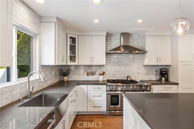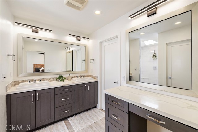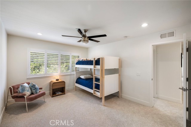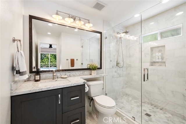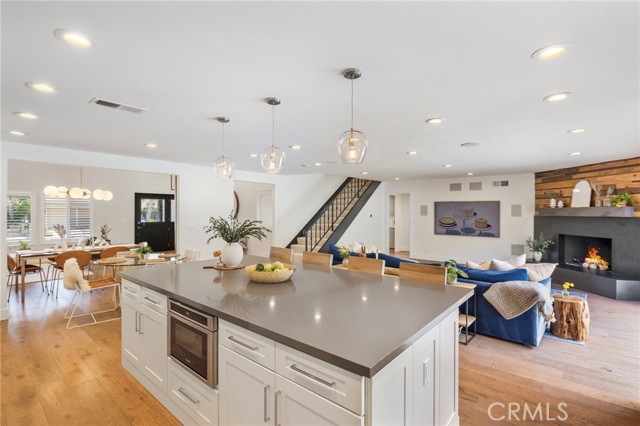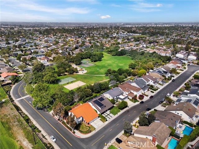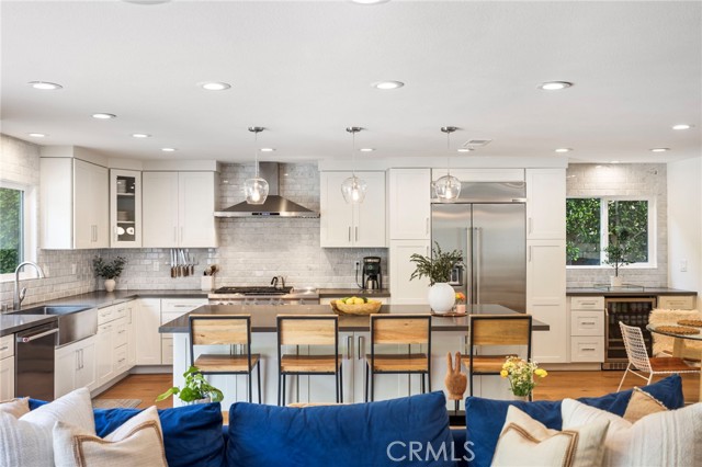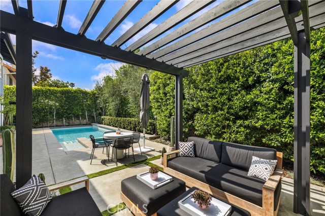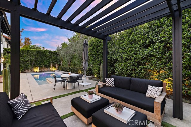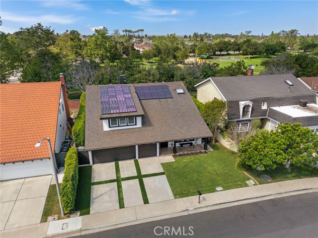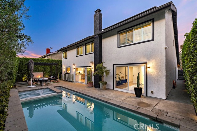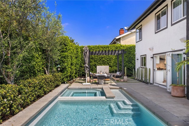 Tucked on one of Mesa Verde's most desirable cul-de-sacs, directly adjacent to Tanager Park and moments from the Costa Mesa Country Club, 2705 Starbird delivers the kind of California living most people only dream about. Beautifully updated and offering approximately 3,005 square feet of thoughtfully designed living space, this home blends elevated entertaining with effortless everyday ease. Natural light fills the open-concept main level, highlighted by wide-plank wire-brushed oak flooring, oversized windows, and plantation shutters throughout. At the heart of the home, the chef's kitchen pairs timeless design with modern functionality, featuring crisp Shaker cabinetry, quartz countertops, a polished Carrara subway tile backsplash, and an expansive island made for gathering. Premium appliances include a 48-inch five-burner range with griddle and double ovens and a built-in counter-depth refrigerator. Retractable accordion doors open to a private resort-style backyard with a sparkling pool, multiple lounge and entertaining areas, and exceptional privacy, ideal for long summer days and warm Southern California evenings. The flexible floor plan offers five bedrooms and four-and-a-half bathrooms, including three ensuite bedrooms across both levels. The spacious primary suite overlooks the park and features a spa-inspired bath with dual vanities, a frameless rain shower, and refined designer finishes. The home is equipped with a centralized smart-home system controlling audio, pool features, and security, along with newer HVAC with Nest thermostat, solar, an updated electrical panel, custom closet systems, electric Hunter Douglas shades, and WiFi optimization throughout. The 3-car garage includes an EV charger, Flow Wall organization system, and dedicated workspace. Combining location, design, and lifestyle, 2705 Starbird is a rare opportunity and a home that truly has it all.