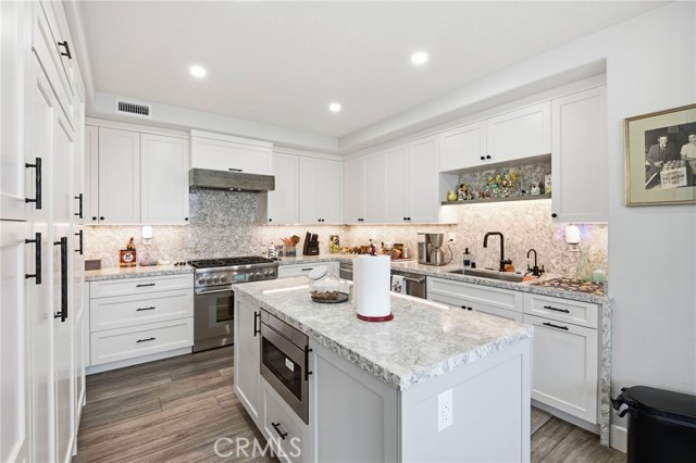 Welcome to 51 Seabrook Cove — a beautifully reimagined single-level retreat nestled in the prestigious guard-gated community of Sea Island in the heart of Newport Beach. Set on a coveted corner lot, this fully remodeled lower unit offers an exceptional blend of luxury, comfort, and modern convenience - spanning approximately 2,600 square feet with 3 bedrooms, 3 bathrooms, a dedicated office, and a sunroom bathed in natural light. The open-concept living areas are designed for both elegant entertaining and everyday ease. The spacious living room anchors the home with a fireplace framed by Italian porcelain, flowing seamlessly into a formal dining room complete with custom built-ins and a wet bar with wine fridge.The chef's kitchen has been thoughtfully reconfigured and features Cambria Quartz countertops, custom cabinetry by Green Wish Concept, and a full suite of premium appliances — Sub-Zero refrigerator, Thermador stove, and Thermador dishwasher. The primary suite is a true sanctuary, offering a fireplace, his-and-her closets, and a spa-inspired en-suite bath with Porcelanosa tile, Cambria Quartz counters, a steam shower, freestanding jetted soaking tub, and Kohler fixtures throughout. Additional highlights include LVT flooring, remote-controlled Hunter Douglas shades, a tankless water heater, new AC unit with Ecobee smart thermostat, a fully remodeled laundry room with custom cabinetry, and a new garage door with MyQ remote access. Step outside to a wrap-around private yard featuring all-new landscaping, porcelain tile, and designer lighting - centered around a luxurious 8-person in-ground jetted spa with waterfall, controlled via the Pentair remote app. Perfect for relaxing evenings under the stars. A Ring security system with cameras provides added peace of mind. As a resident of Sea Island, enjoy 24-hour guard-gated security and resort-style amenities including two pools and spas, two tennis courts, and a clubhouse — all just minutes from Balboa Island, Fashion Island, and the scenic Back Bay.