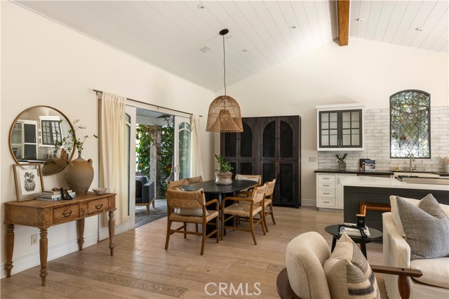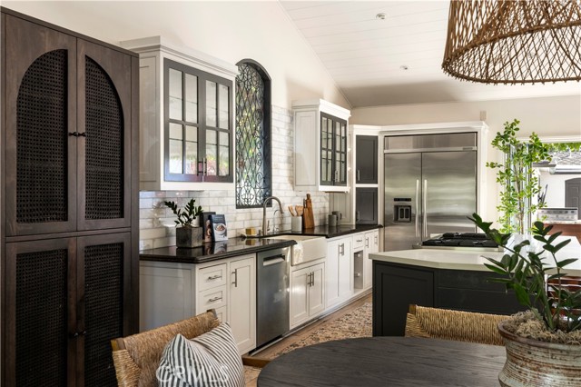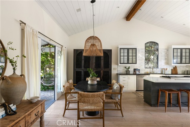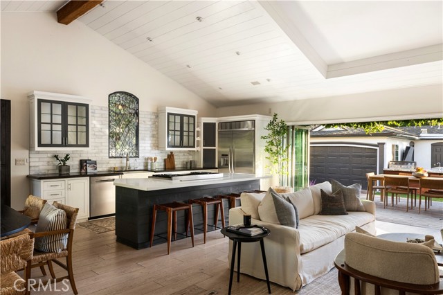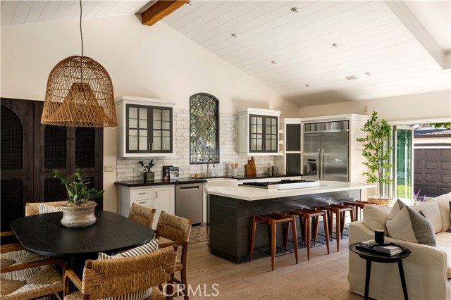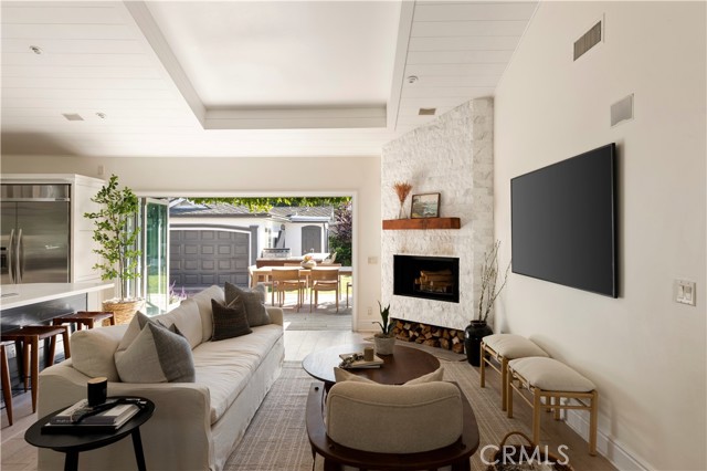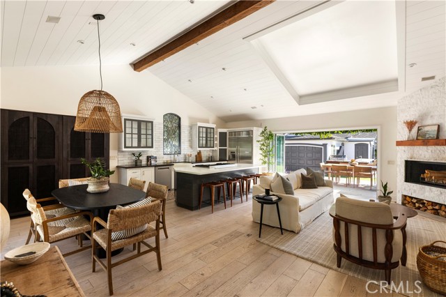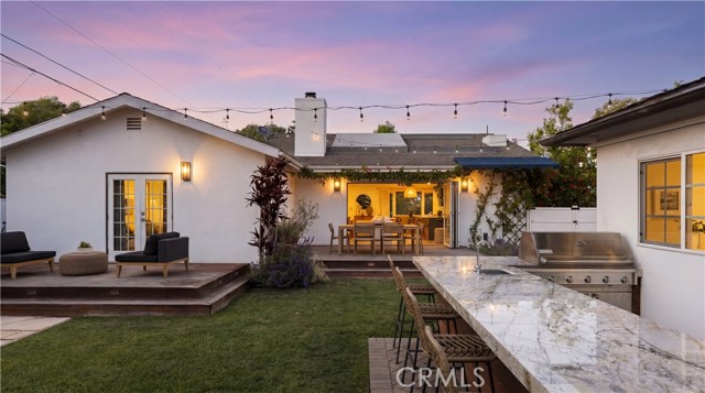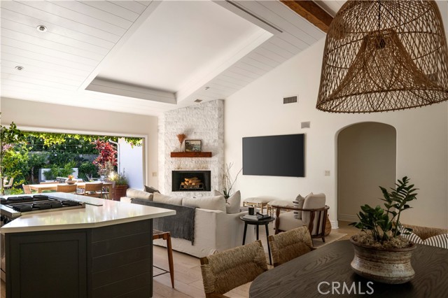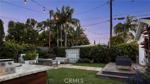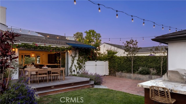 Tucked at the end of a quiet cul-de-sac and draped in blooming trumpet vines, this thoughtfully updated Eastside Costa Mesa residence blends timeless design with effortless indoor-outdoor living on a generously sized lot. Over the years, the property has been expanded to offer three bedrooms and two-and-a-half bathrooms within a light-filled, open-concept floor plan. Vaulted shiplap ceilings soar overhead, grounded by light hardwood floors and arched details. The kitchen is the undisputed heart of the home: custom two-tone cabinetry with glass fronts, marble subway tile, a six-burner range with double oven, farmhouse sink, and a generous breakfast bar that flows into the living and dining areas. A fireplace anchors the living room, while a nearly 12’ La Cantina door dissolves the boundary between indoors and out. The primary suite addition offers a peaceful retreat with a private deck and direct backyard access, while the secondary bedrooms and updated bathroom provide flexible space for guests, home office, or play room. The home is further enhanced by central air conditioning, a whole-house Aquasana water filtration system, and an under-sink reverse osmosis system. Designed for year-round enjoyment, the front and backyards unfold as a series of intimate yet connected outdoor spaces, with eight mature citrus and fruit trees woven throughout. An entertainer’s bar, complete with barbecue, sink, and refrigerator, opens to a sweeping backyard garden setting where string lights, a fire pit lounge, and tiled fountain create a relaxed, inviting atmosphere. A conveniently located half-bath with exterior access keeps guests comfortable without ever stepping inside. A side-yard putting green, raised planter beds, and an automated irrigation system complete the landscape. Additional highlights include a gated private driveway to a finished garage with built-in cabinetry and attic storage. The driveway also presents potential for RV or additional off-street parking. Ideally located just moments from Irvine Ranch Market, Back Bay Center, and the scenic trails of Upper Newport Bay, this home offers a rare blend of charm, functionality, and lifestyle in one of Costa Mesa’s most desirable neighborhoods. *Seller may consider buyer concessions if requested in an offer.*